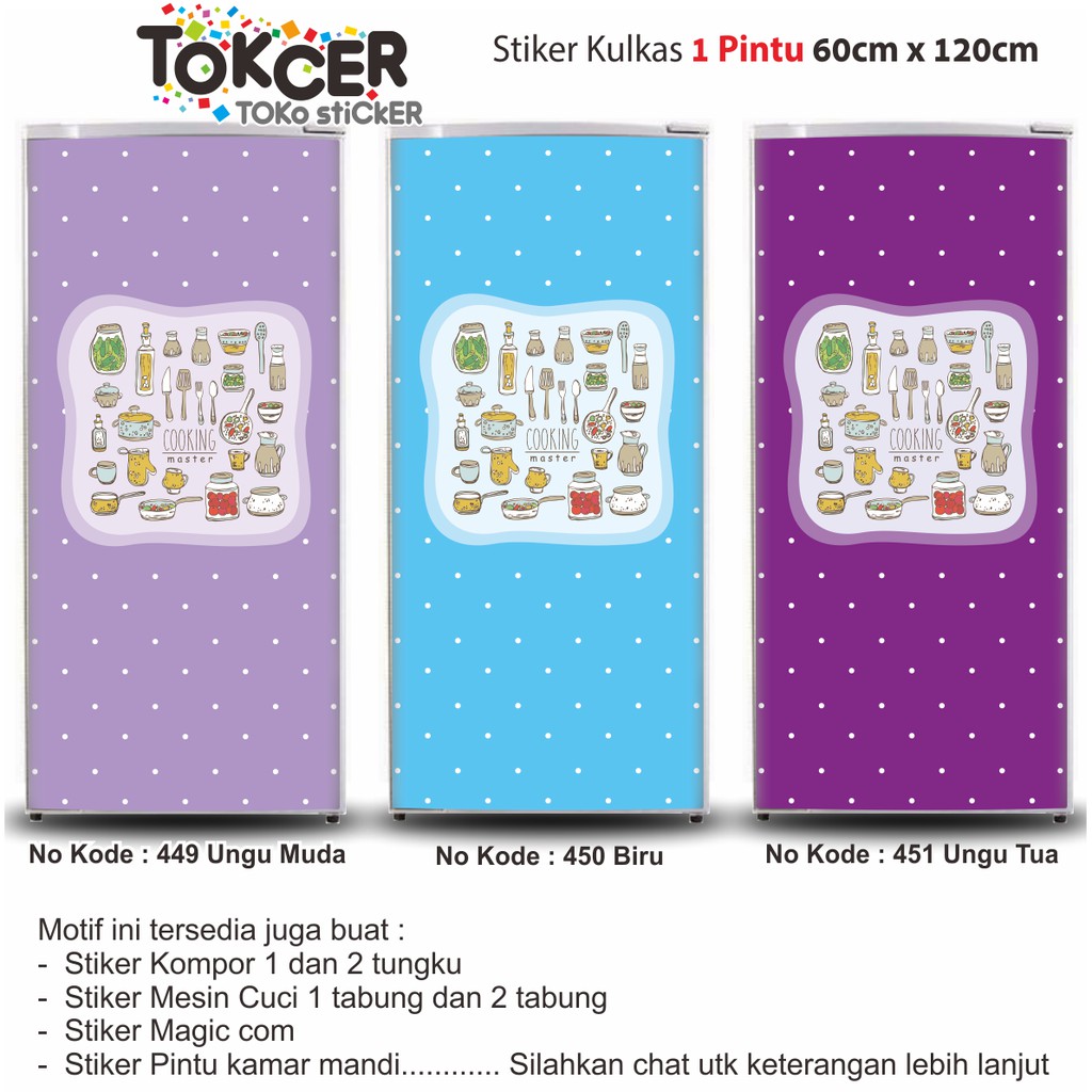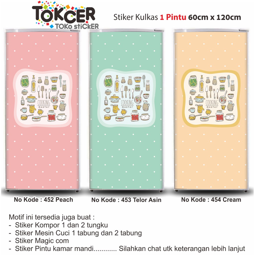 Stiker Kulkas LAMINATING GLOSSY Anti LUNTUR ukuran 1 Pintu atau 2 Pintu COOKING MASTER