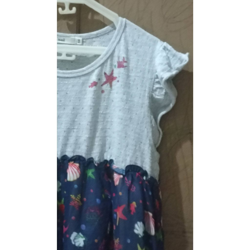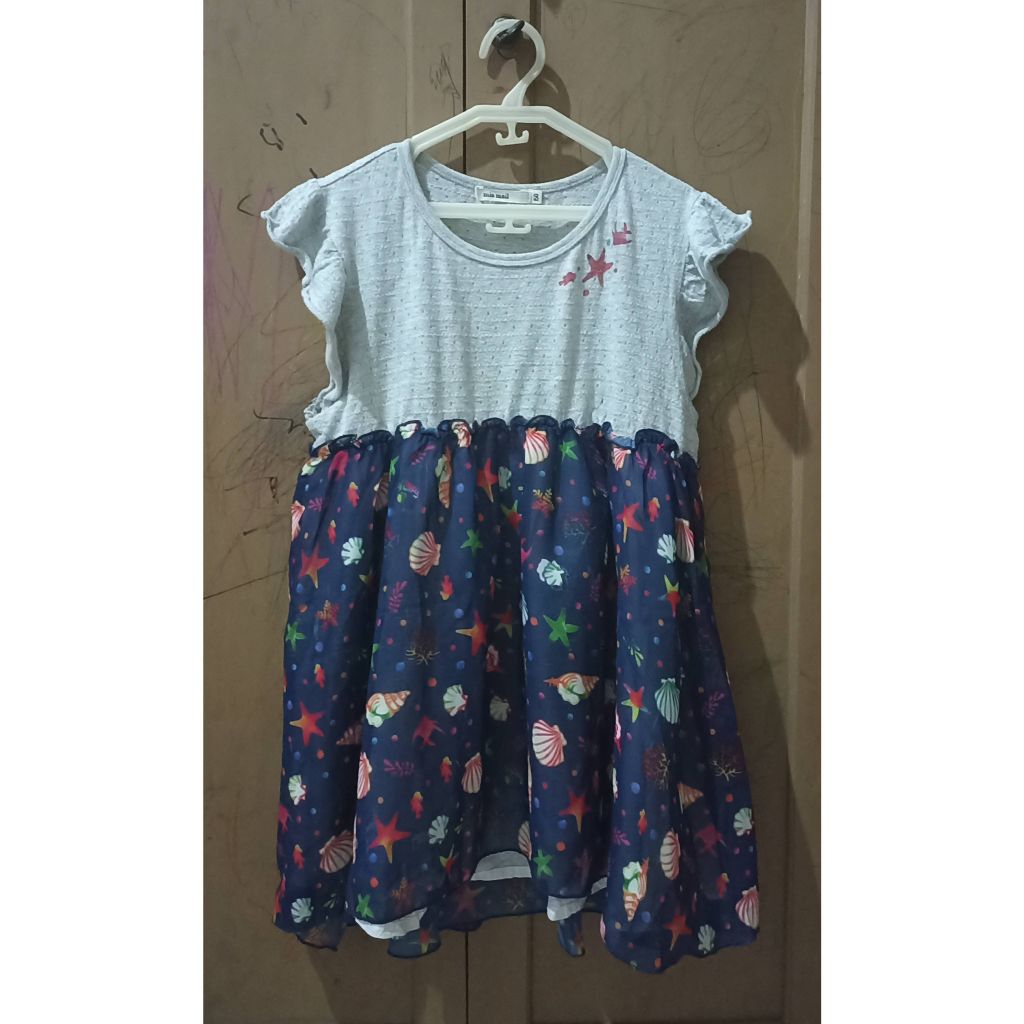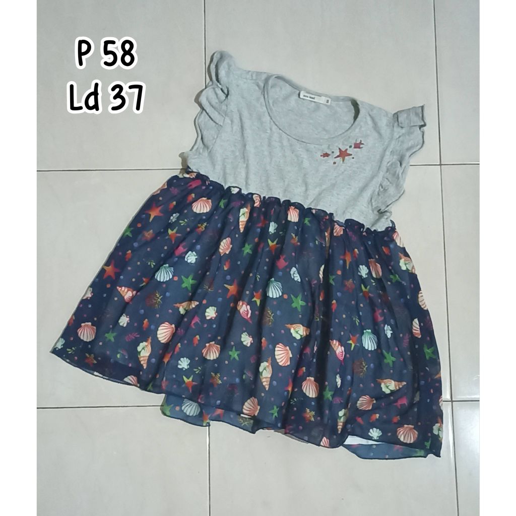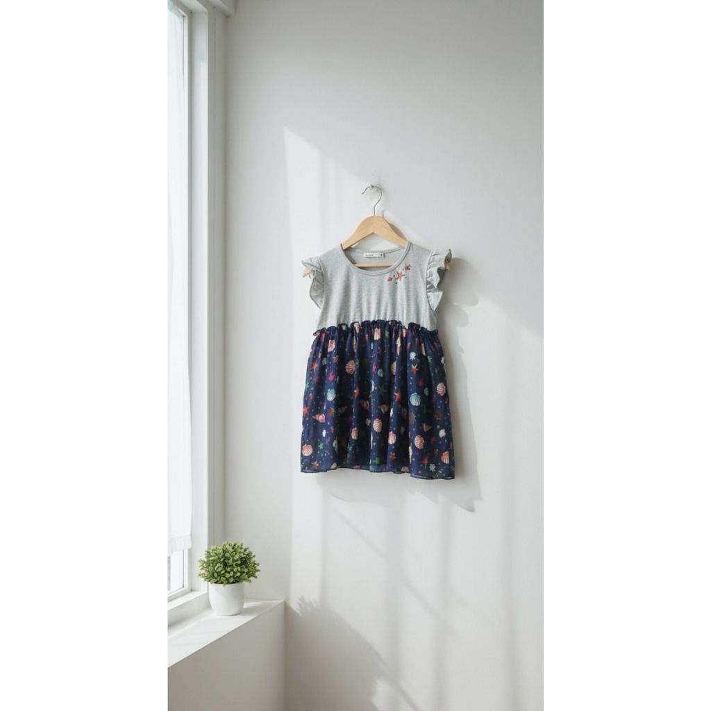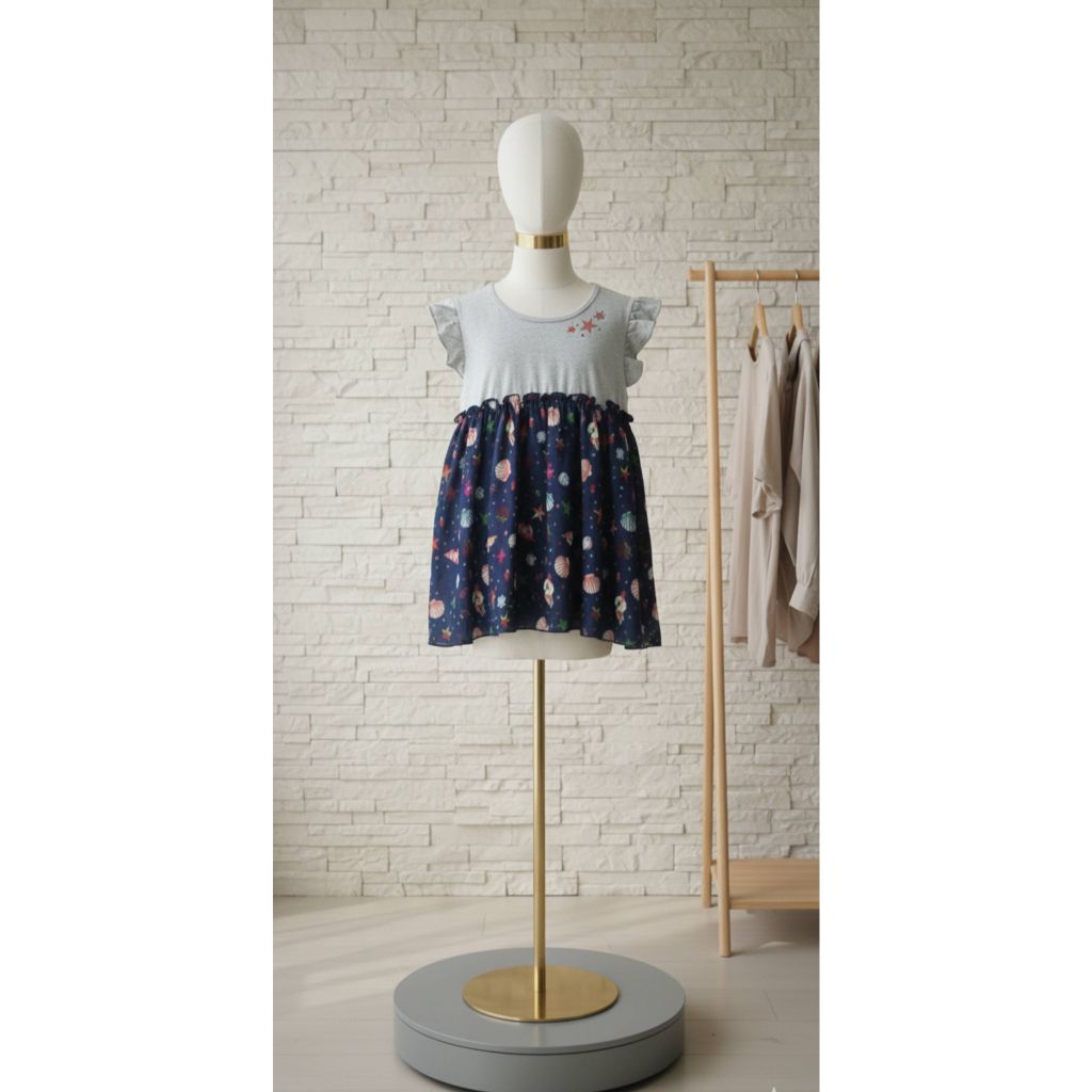 PL - blouse anak tanggung perempuan 11-12-13-14 tahun remaja abg wanita abu abu kombinasi navy sifon motif kerang bintang laut siput atasan jalan pakaian santai