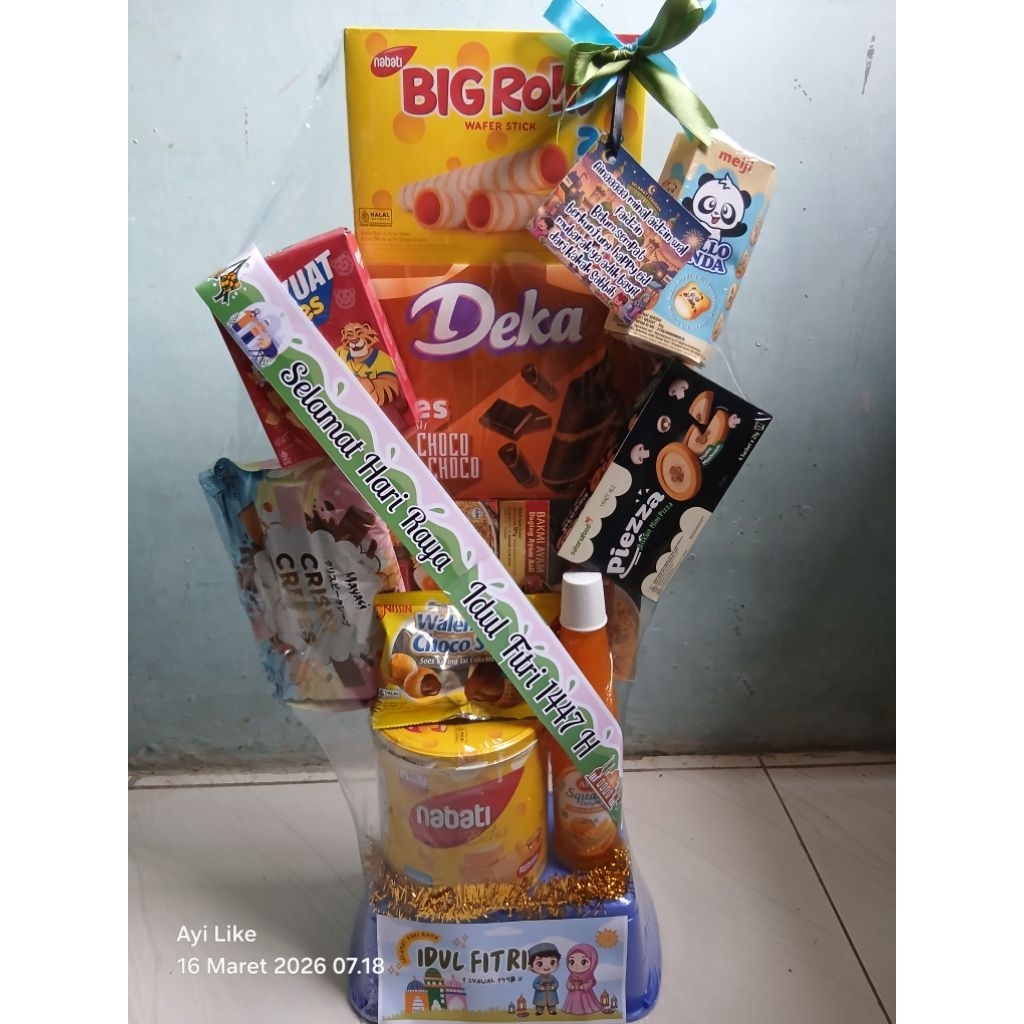ayilike parsel Snack mars 150ribu Karawang custom ucapan / hampers lebaran graduation birthday wedding