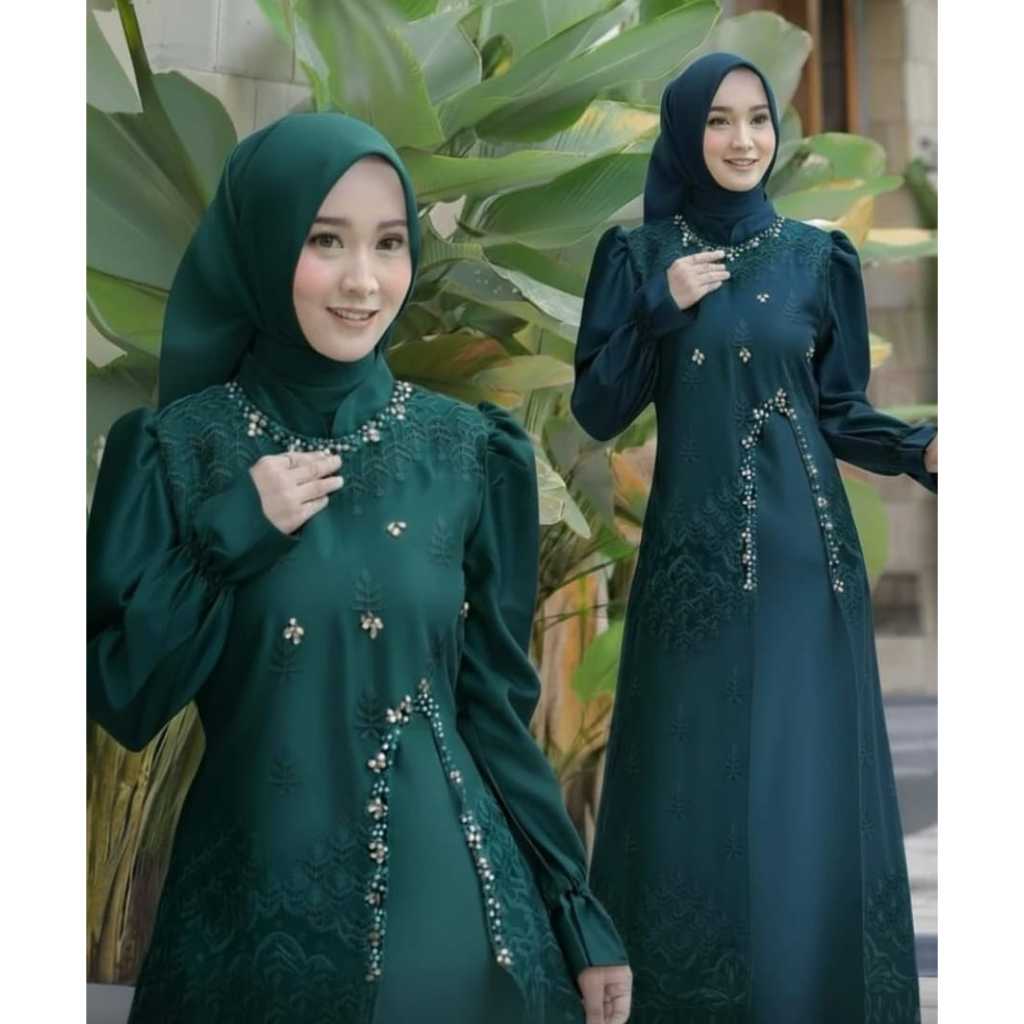 MANDA DRESS GAMIS BERUKAT WANITA BERBAHAN VELVET AKSEN BERUKAT BAJU DRESS PESTA KEKINIAN TERSEDIA WARNA EMERAL
