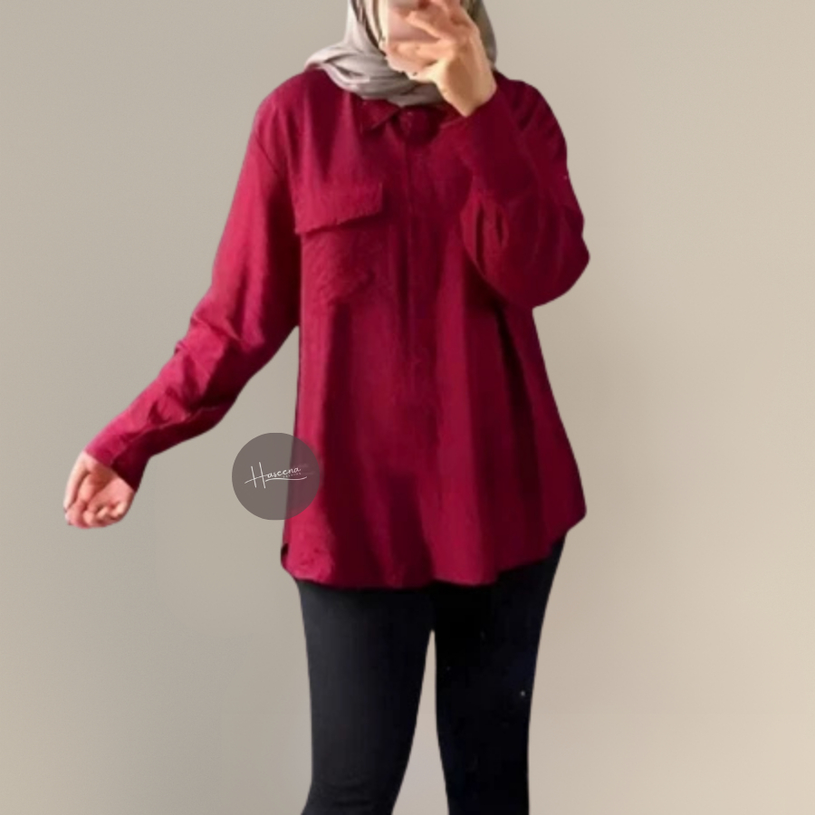 Haseena Tunik Khalisa Lengan Panjang Polo Linen Polos