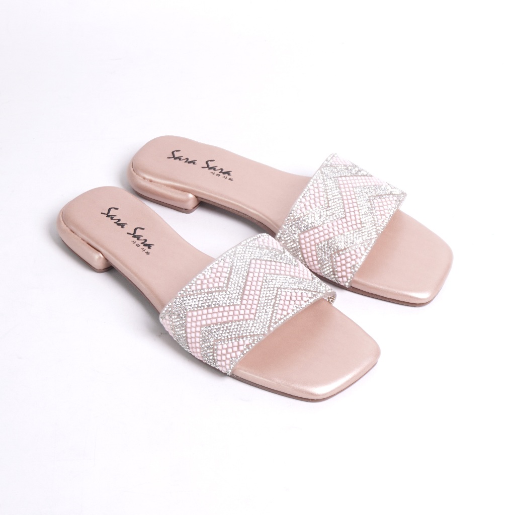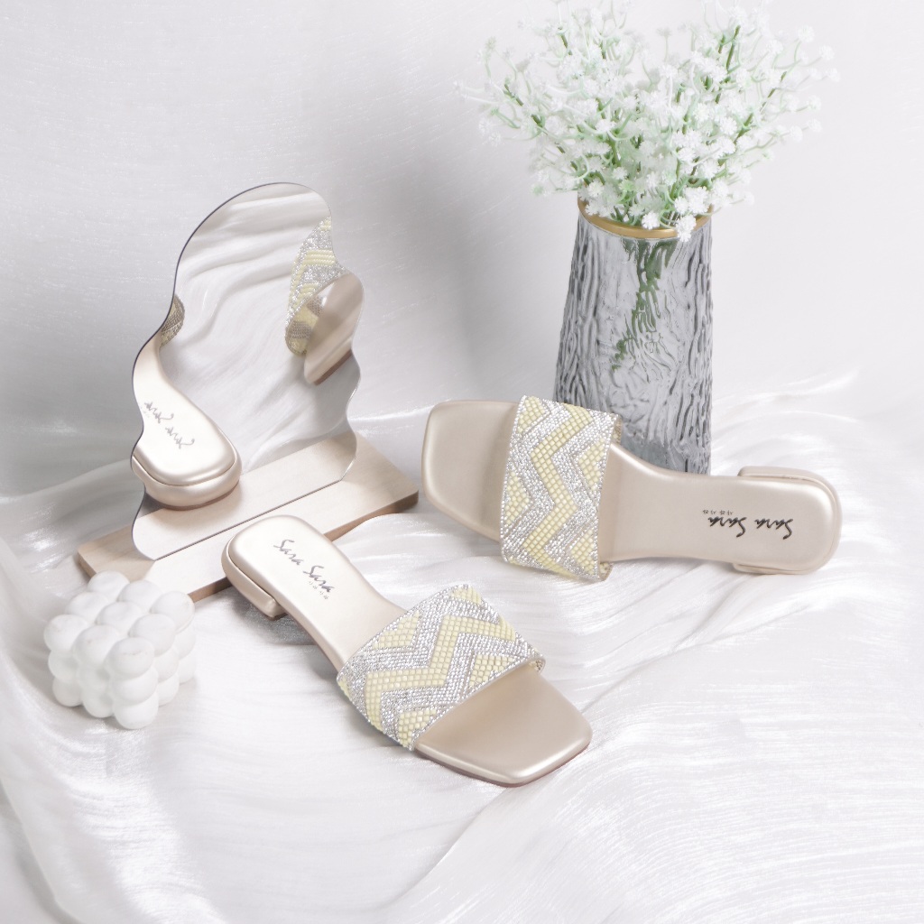 SARASARA LIVE - YURA Sandal Flat Wanita Sendal Teplek Kristal Wanita