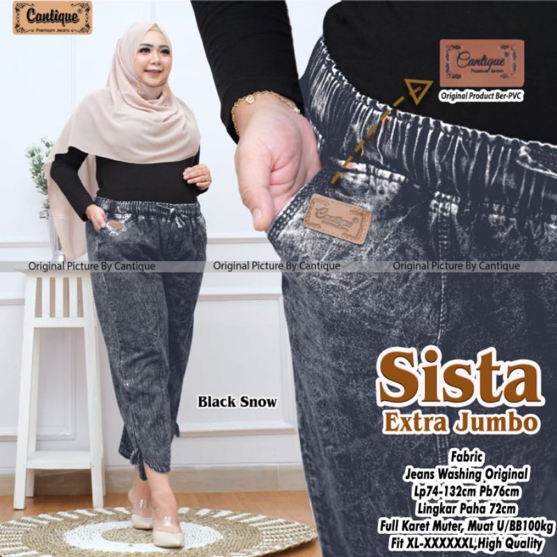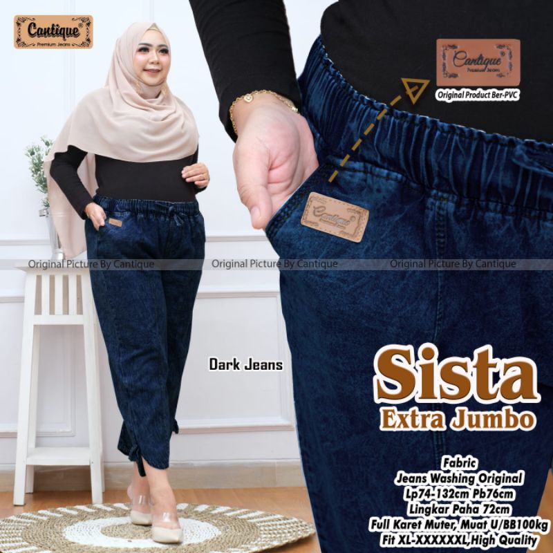 Celana Jeans Denim Lepis Jumbo Big Size Xxxl Pinggang Karet 7/8 Wanita Cewek Cewe Perempuan Terbaru Kekinian