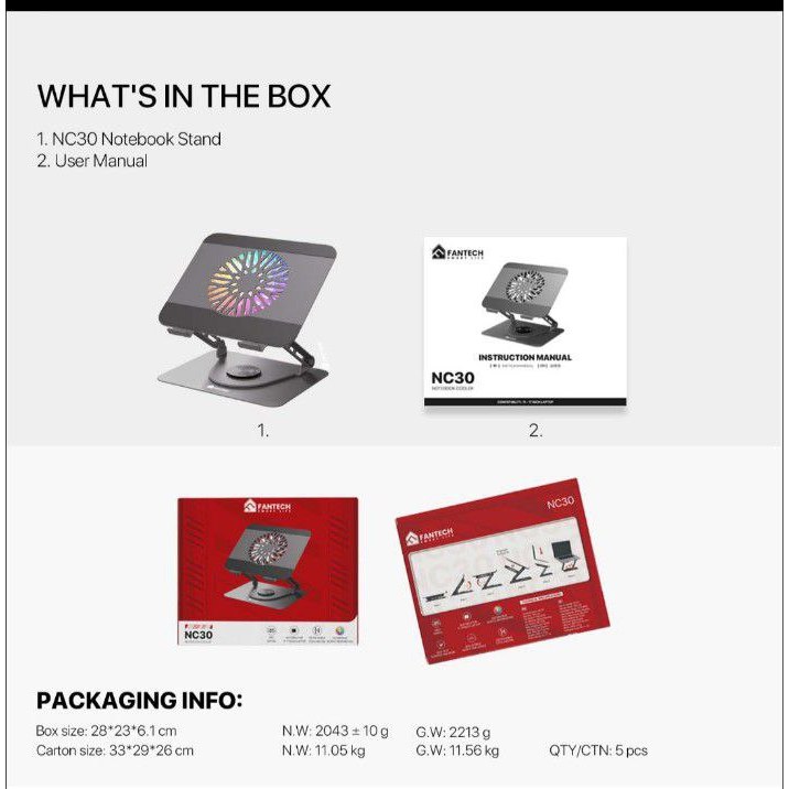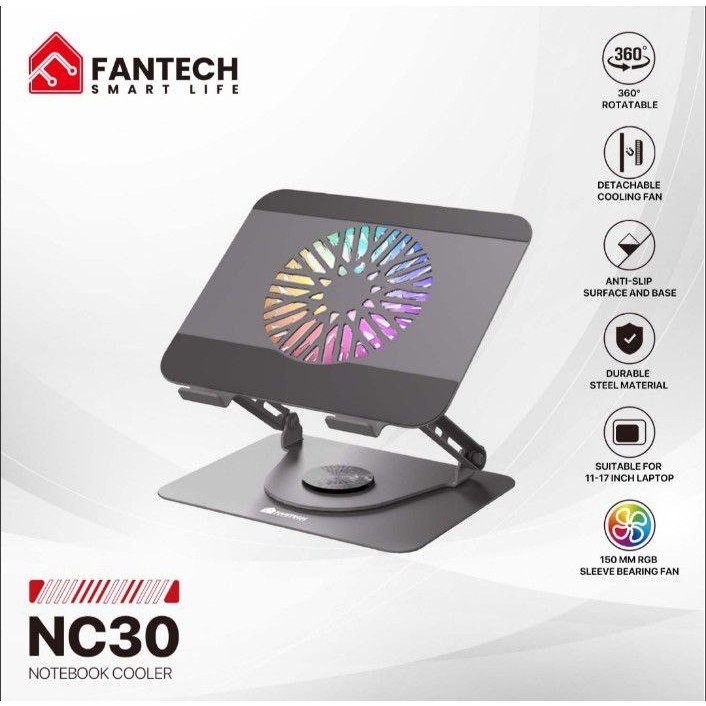 Cbd* Fantech NC30 Cooling Pad Metal Besi RGB Kipas Pendingin Laptop Notebook Cooler 360 derajat for Laptop 11 - 17 inch