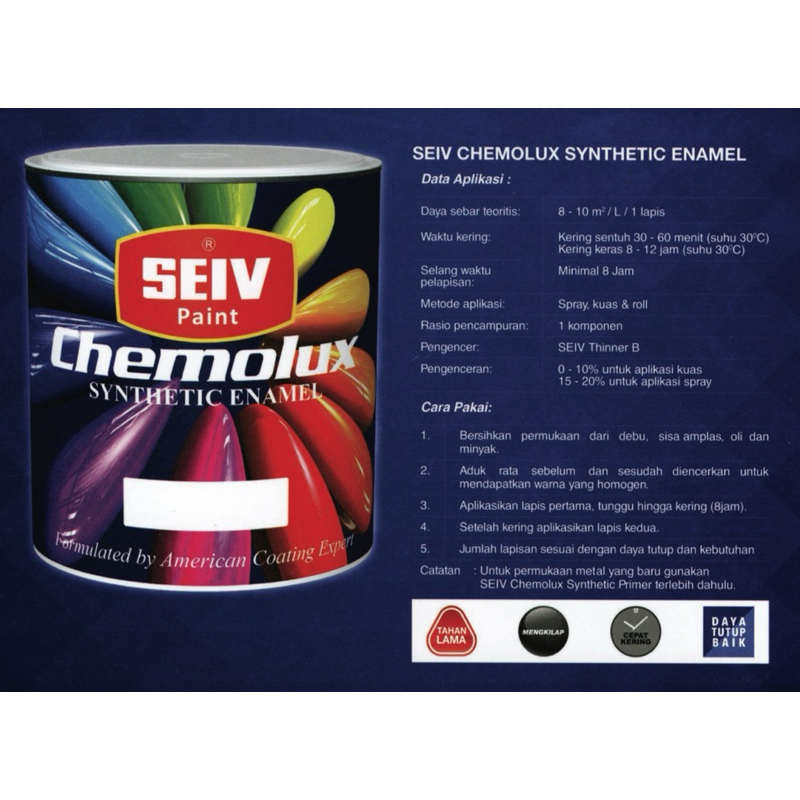 Seiv Paint Chemolux Synthetic Enamel (CAT BESI DAN KAYU ) (WARNA MATT)