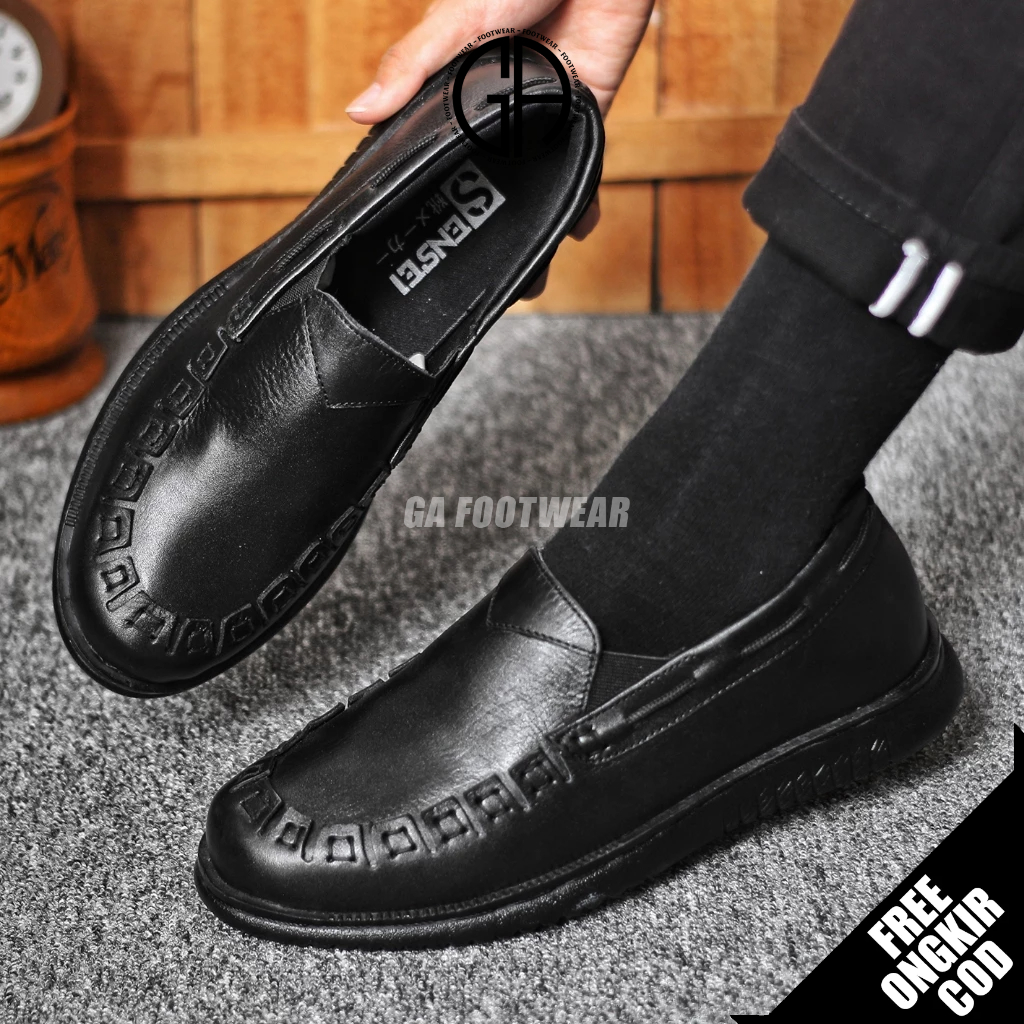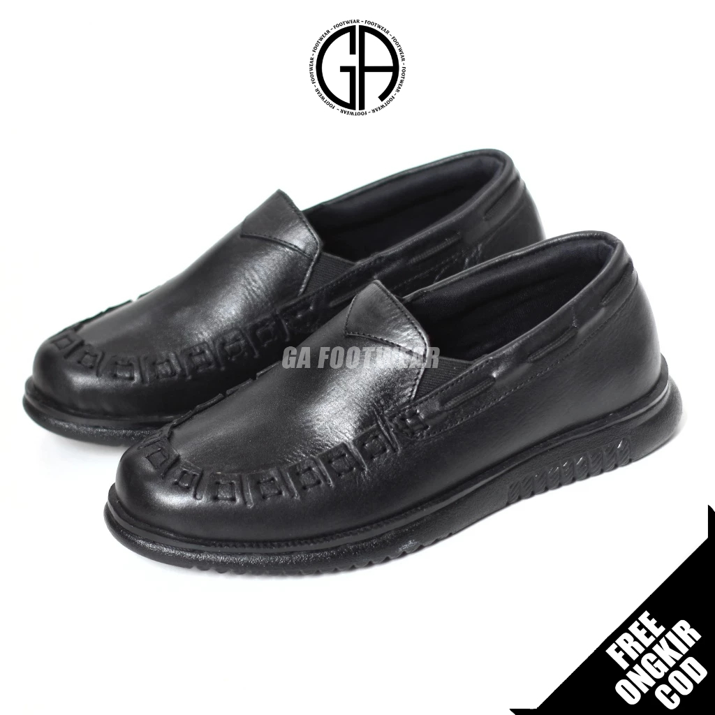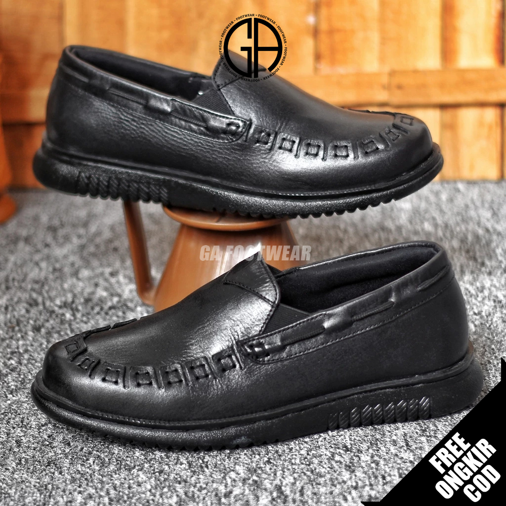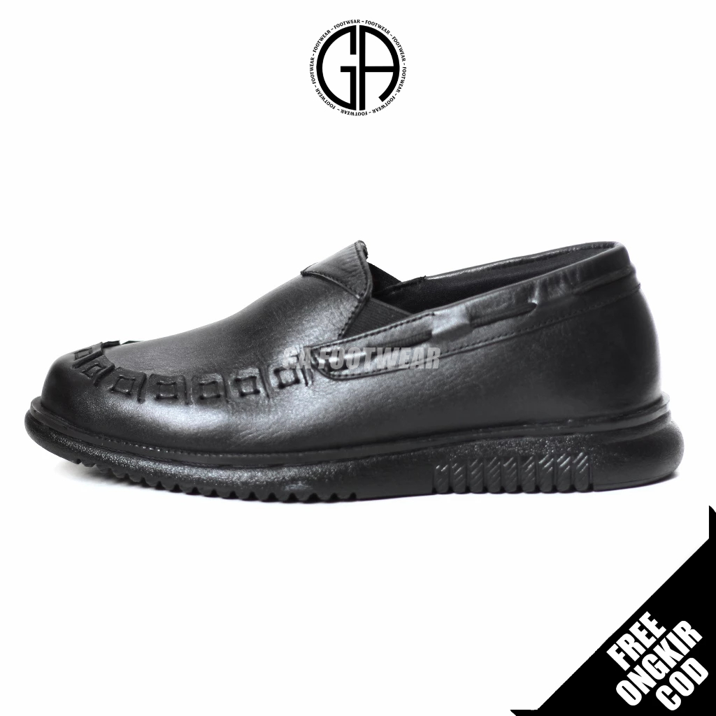 GA FOOTWEAR Rezen - Sepatu Pantofel Formal Pria Kulit Asli Hitam