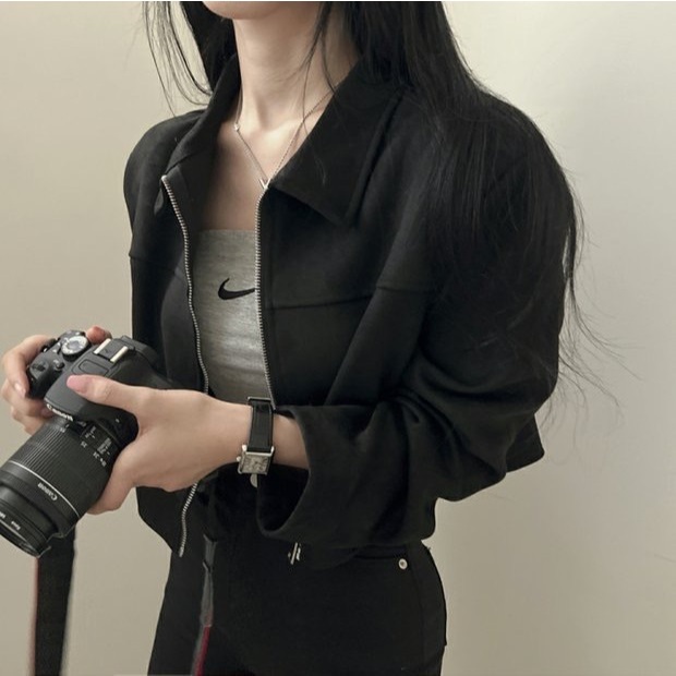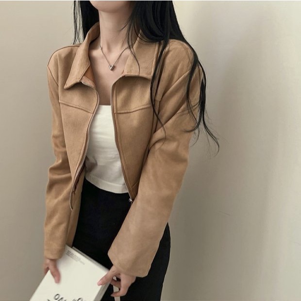JACKET JISOO PREMIUM MODEL KOREAN STYLE / JAKCET CROP TOP WANITA KOREAN / WARNA OLIVE CARAMEL BLACK