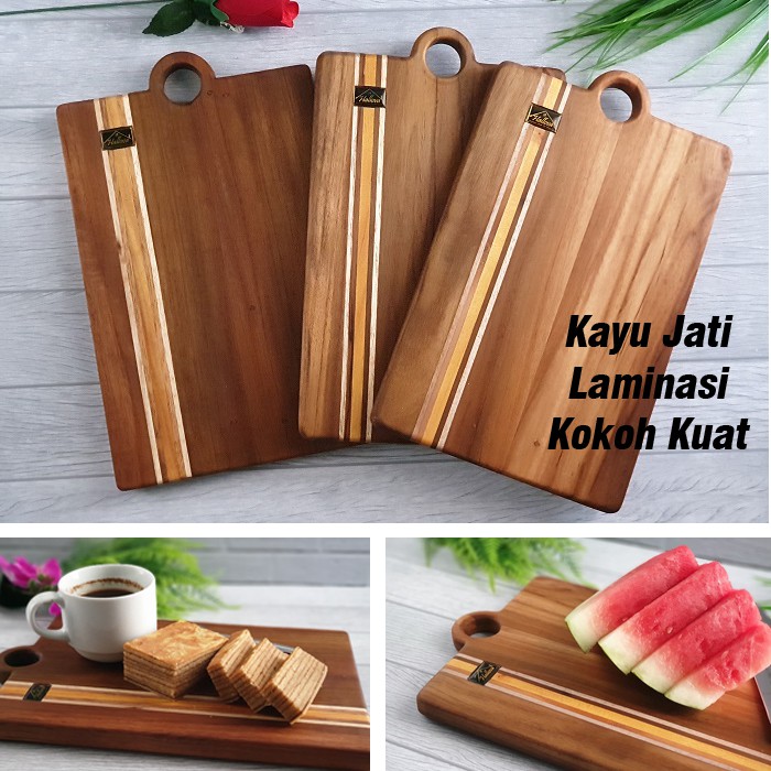Talenan Kayu Jati Kotak Model 02 Wooden Cuuting Board Original Hallova