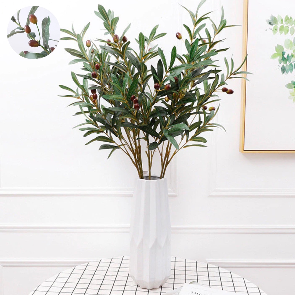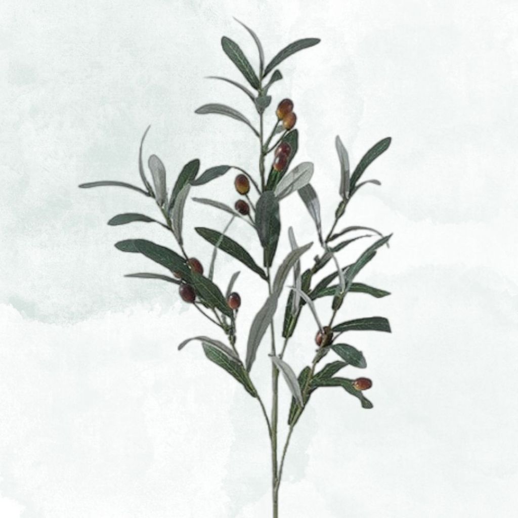 TANGKAI BUAH ZAITUN Olive Artificial Mirip Asli - Tangkai Pohon Zaitun Buatan - Buah Zaitun Plastik - Daun Hias Olive Eucalyptus - Dekorasi Rumah