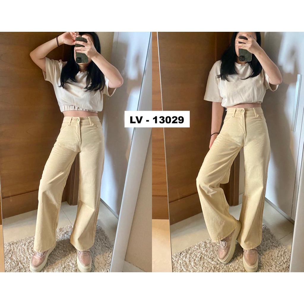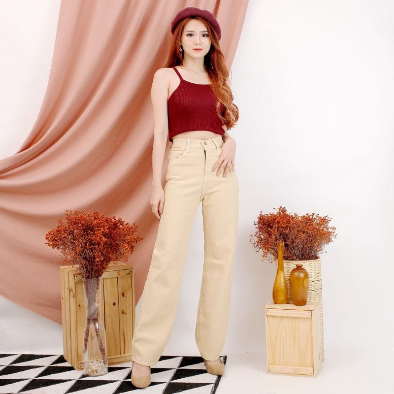 JN529 - KULOT BOYFRIEND JEANS HIGHWAIST CREAM 13029
