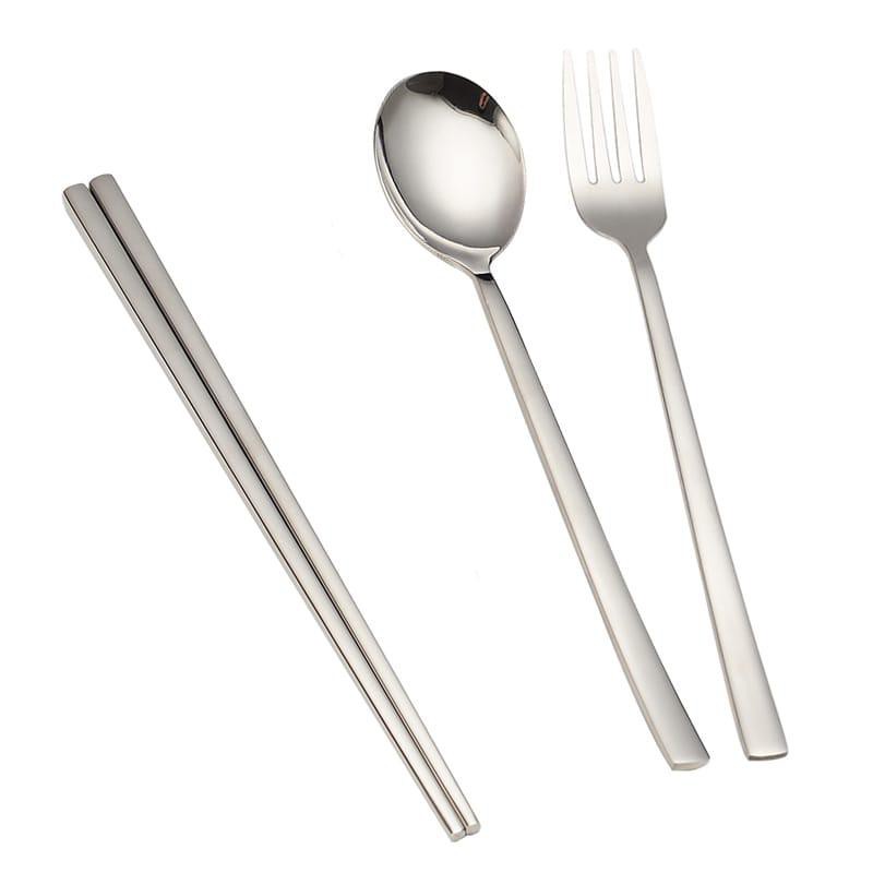 Sendok Garpu Sumpit Set Korea Stainless Silver Size Standard/ Sujeo Spoon Fork Chopstick Set/ Alat Makan Stainless