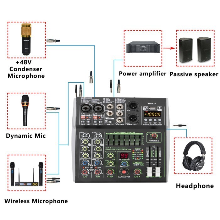 Mixer Audio Digital 4 Channel Audio DSP 99 Effects Bluetooth - BDB CW2H