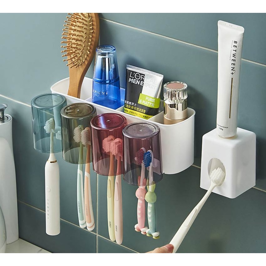 Tempat Sikat Gigi 4-CUPS Rak Kamar Mandi / Tempat Sikat Gigi Estetik / Tempat Sabun Kamar Mandi / Tempat Odol
