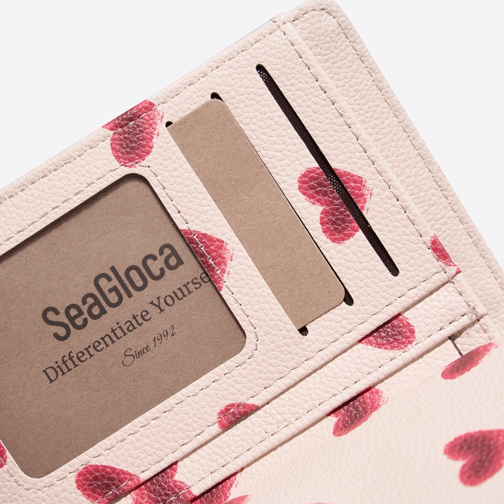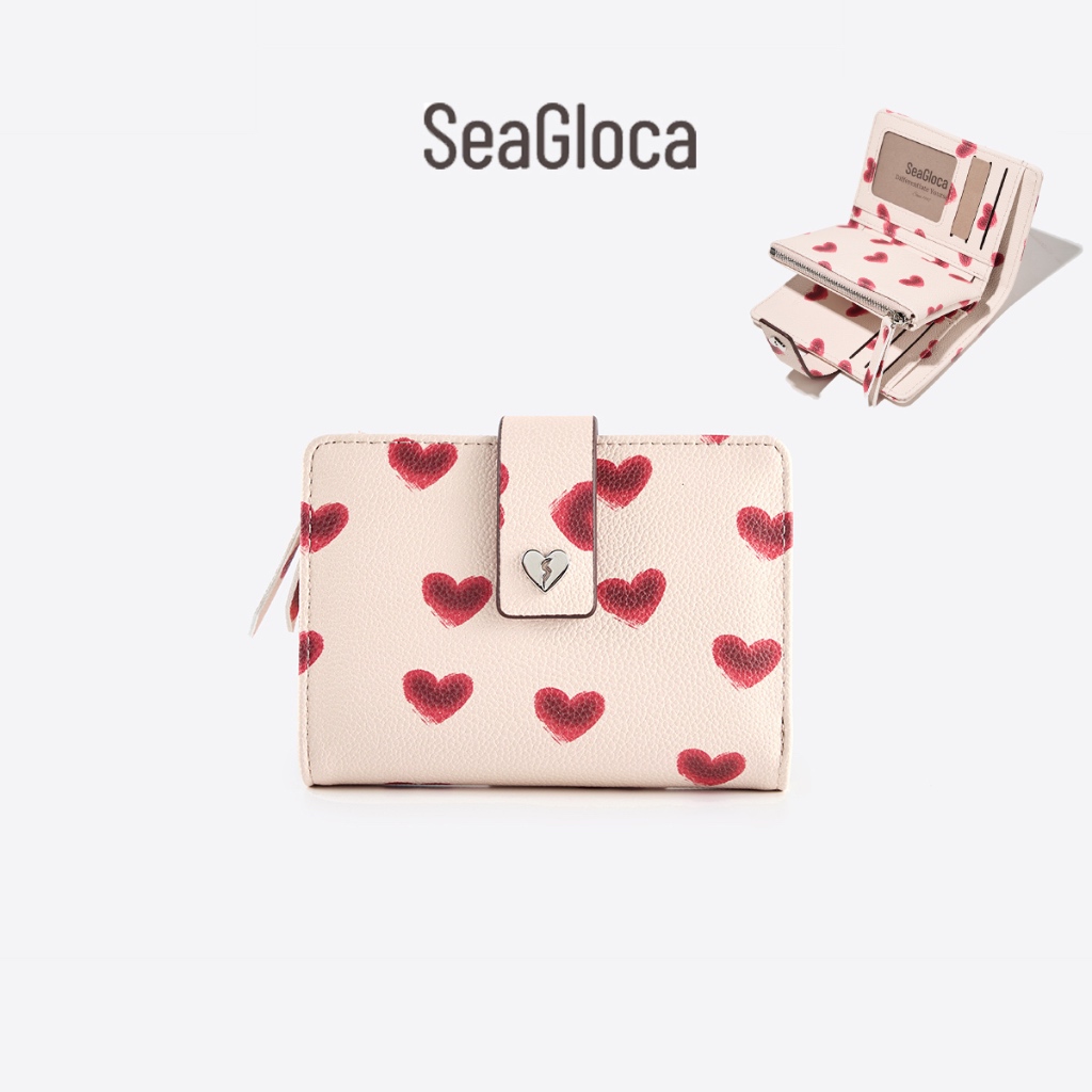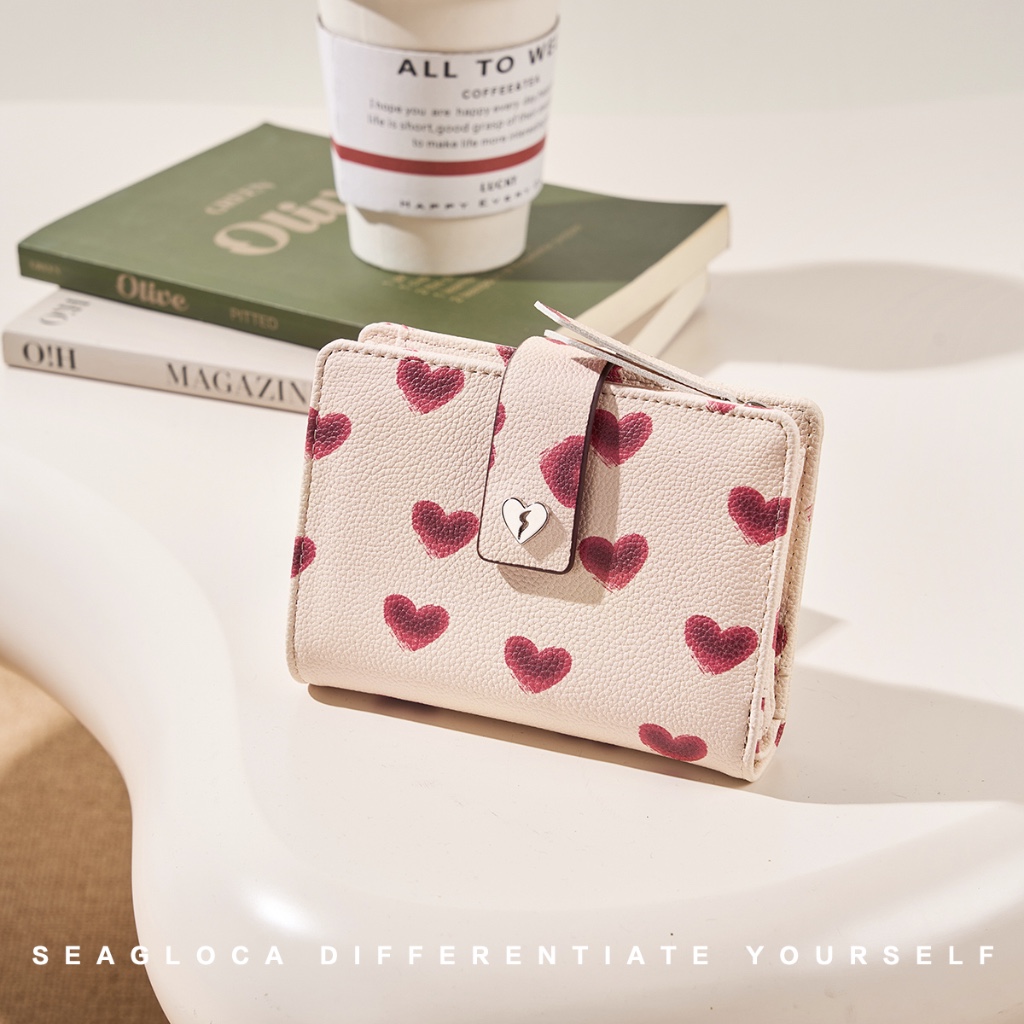 SeaGloca Serial Heart Beat Multi Fungsi Love Heart Print Lipat Dua Dompet Koin untuk Wanita No 28