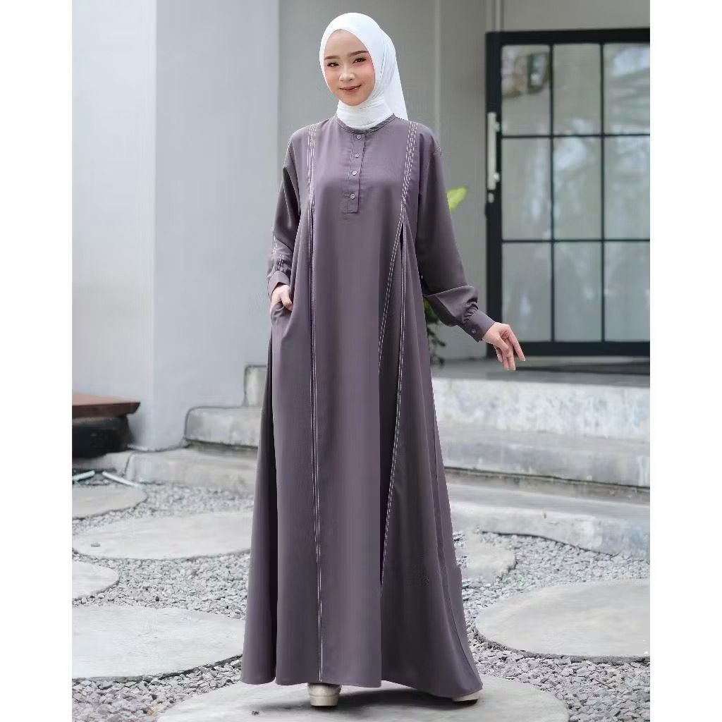 Nabila Dress Gamis Jumbo Polos Anti UV Busui Friendly Kekinian Simple Elegan
