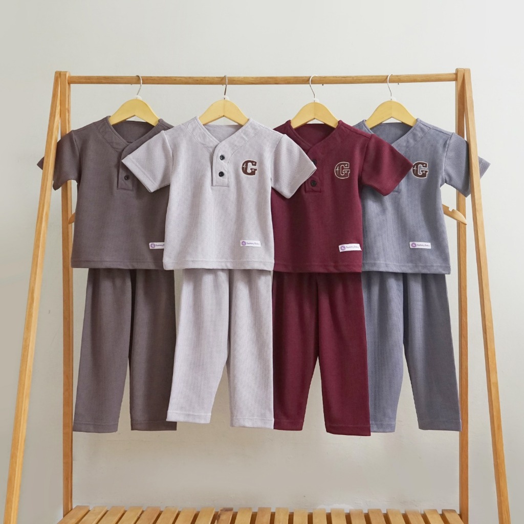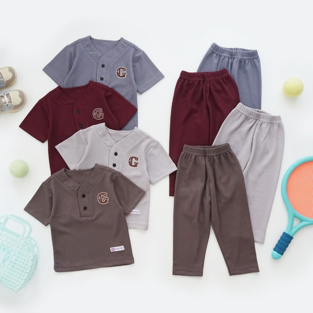 Baju Set Anak Stretchy Waffle Play Set Baju Setelan Anak Piyama Panjang Bayi