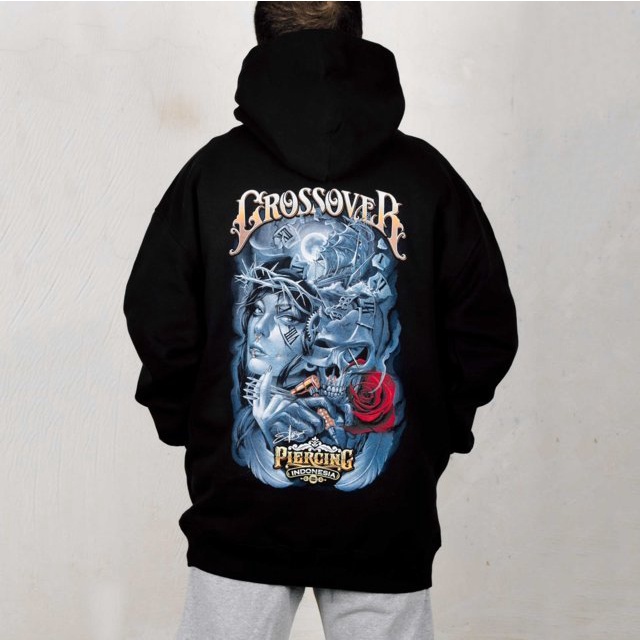 CROSSOVER X PIERCING INDONESIA X EBIE SCROW BLACK HOODIE