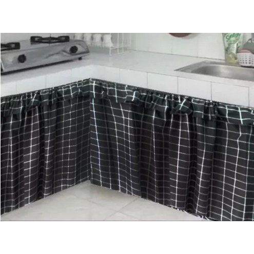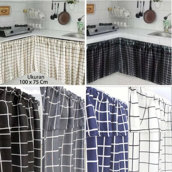 Gorden Kolong Dapur Motif Kotak Minimalis Estetik Murah