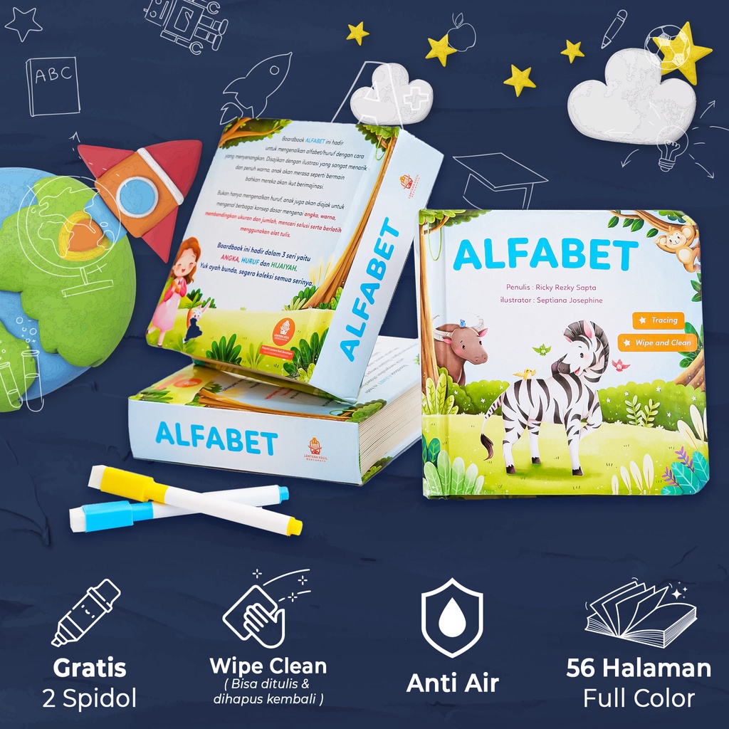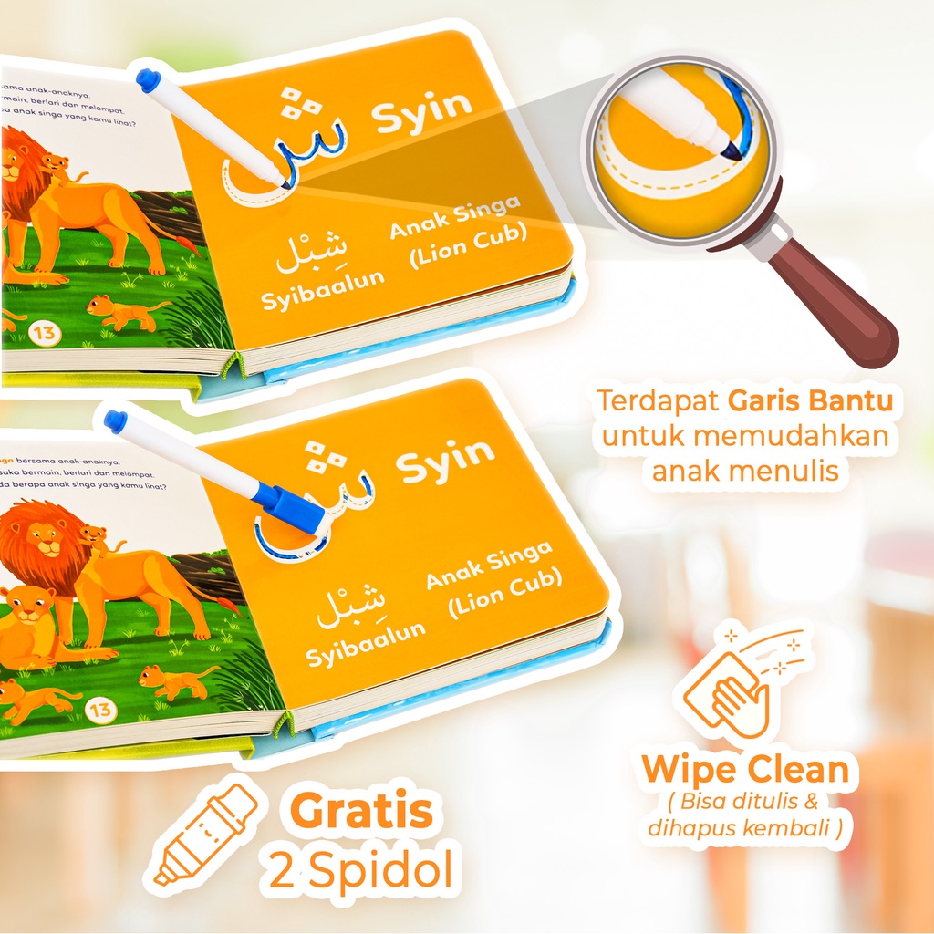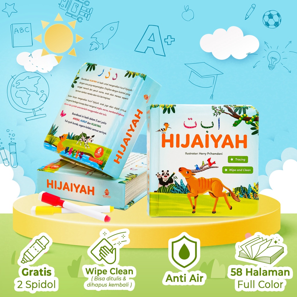 BOARDBOOK Buku Cerita KADO Anak Hijaiyah Alfabet WIPE CLEAN Belajar Huruf untuk Balita TK PAUD