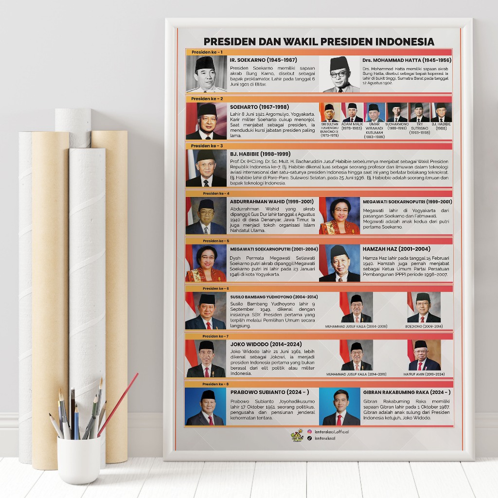Poster Alat Peraga Edukasi Kebangsaan Pancasila UUD 1945 Proklamasi Sumpah Pemuda Pahlawan Nasional Presiden Wakil Presiden Prabowo Gibran Peta Indonesia Sejarah Patriotisme Tokoh Nasional Media Belajar Sekolah #KebangsaanA4