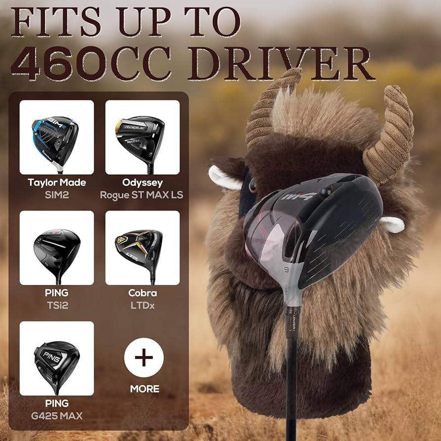Golf Cover American Bison Driver Head Cover 460cc Plush Sarung Pelindung Stik Golf Driver Animal