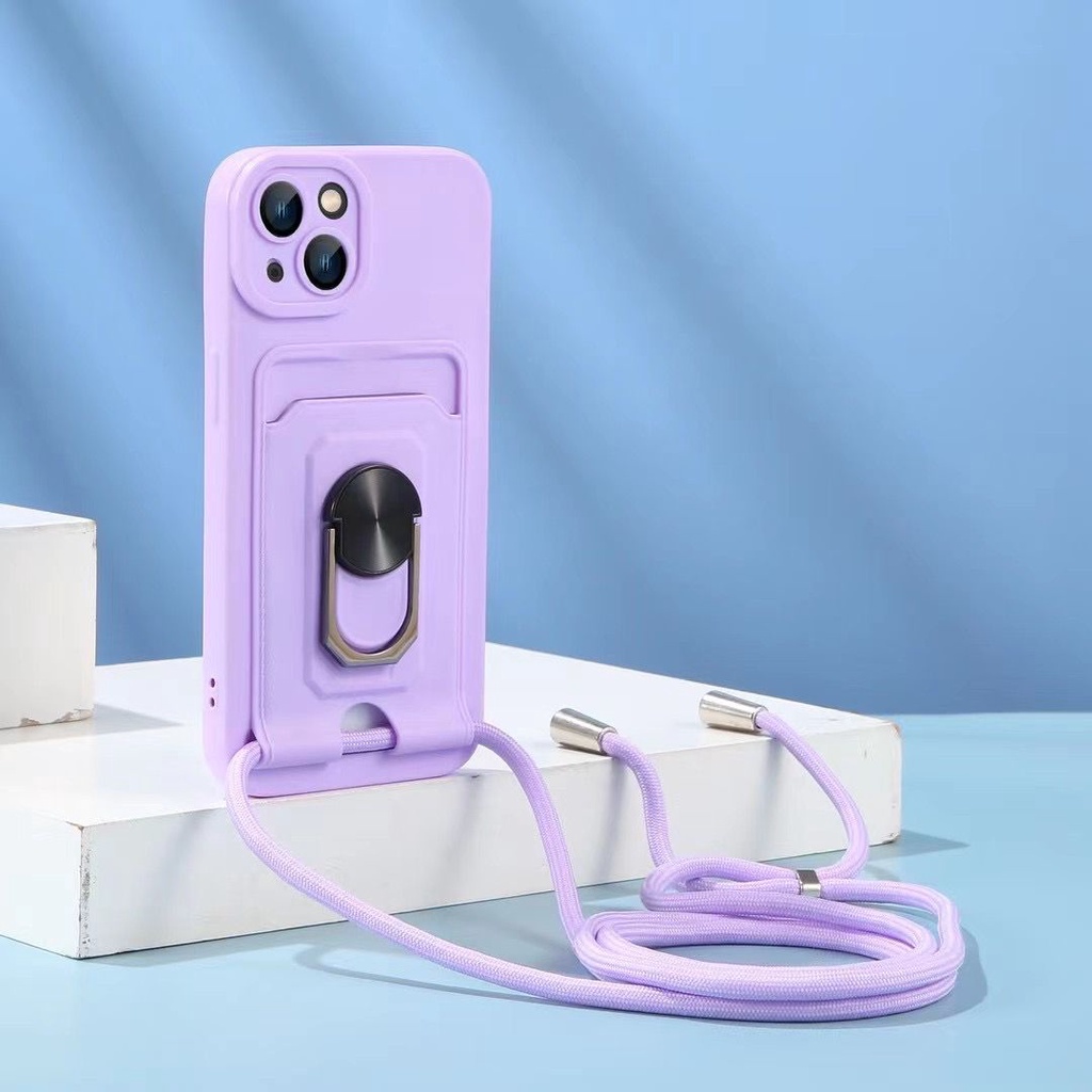 Soft Case Ring Pelindung Kamera Samsung A03 Core A20S A52 4G/5G/A52S A72 dengan Card Holder Tali Lanyard CSRTR