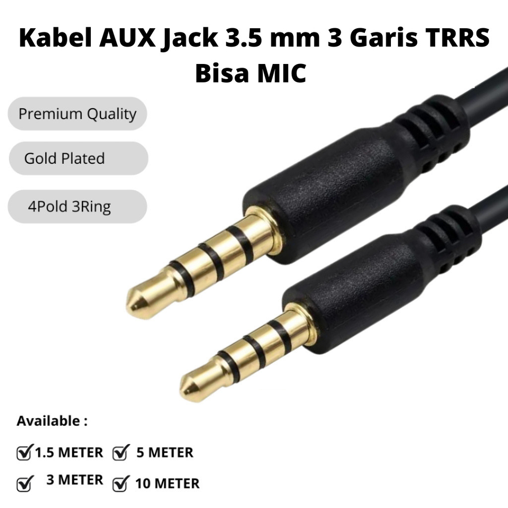 Kabel AUX Jack 3.5 mm 3 Garis TRRS 4 pole Bisa MIC 1m 3m 5m 10m