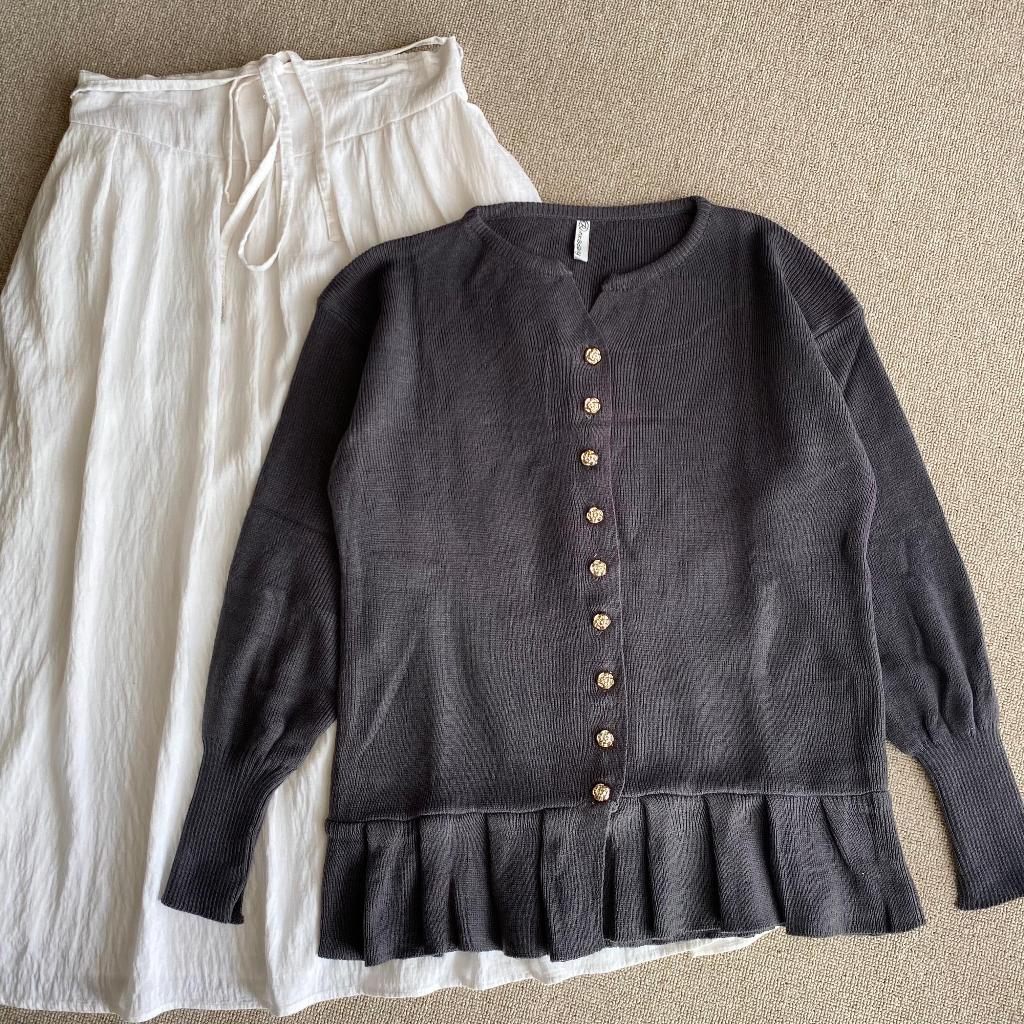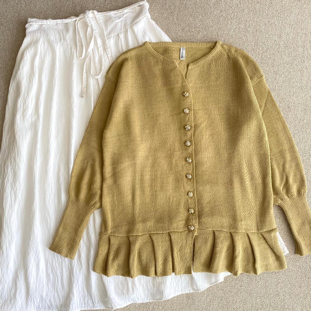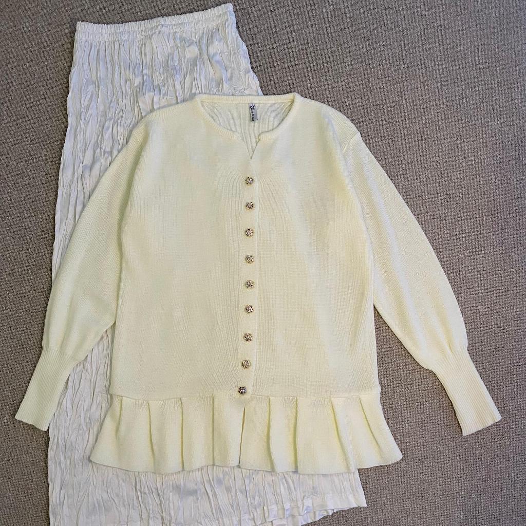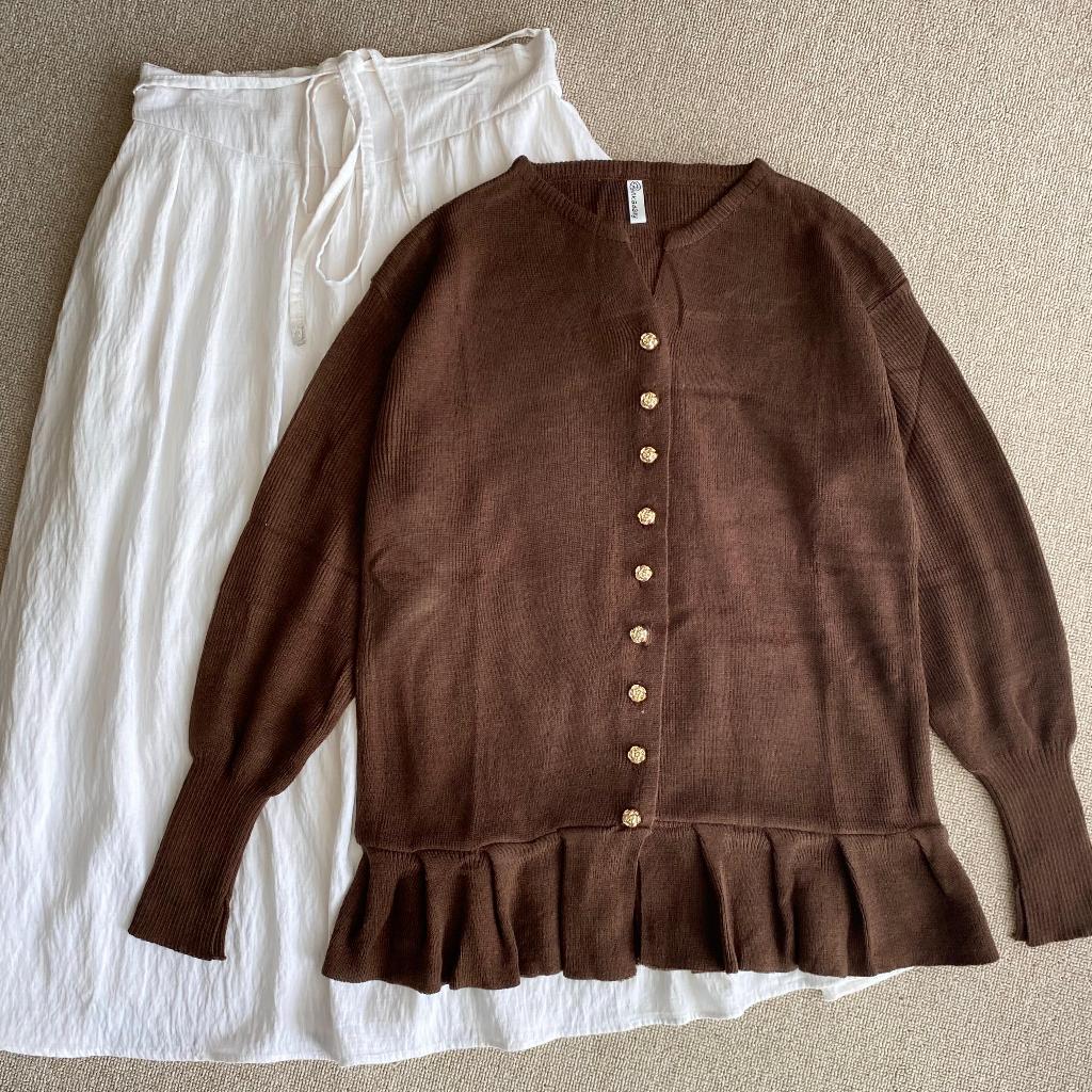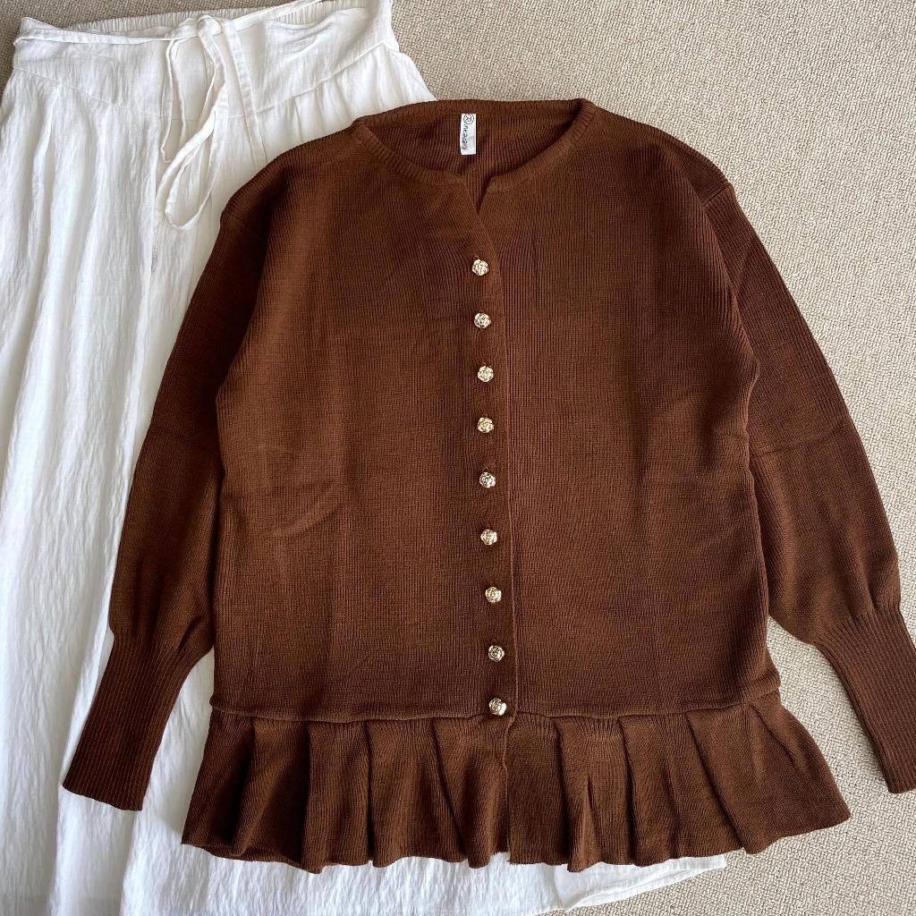 Alana Cardigan Rampel Kancing Flower Gold Tebal Premium