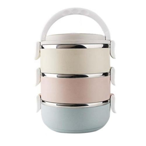 Rantang Stainless 3/4/5 Susun Tahan Panas Kedap Udara Premium Quality Protect Fresh Box Bulat kombinasi Warna Warni Polos Lunch Box Plastik dan stainless Laris_unik