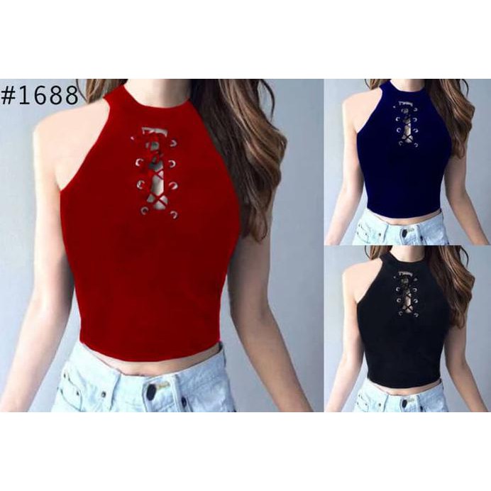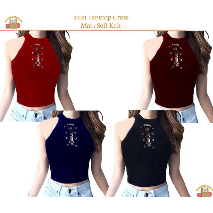 Yuki Tank Top / Inner Knitting / Rajut Tank Top You Can See Crop Tee - Merah
