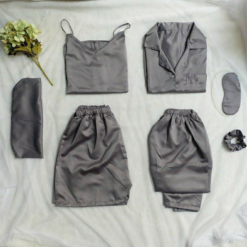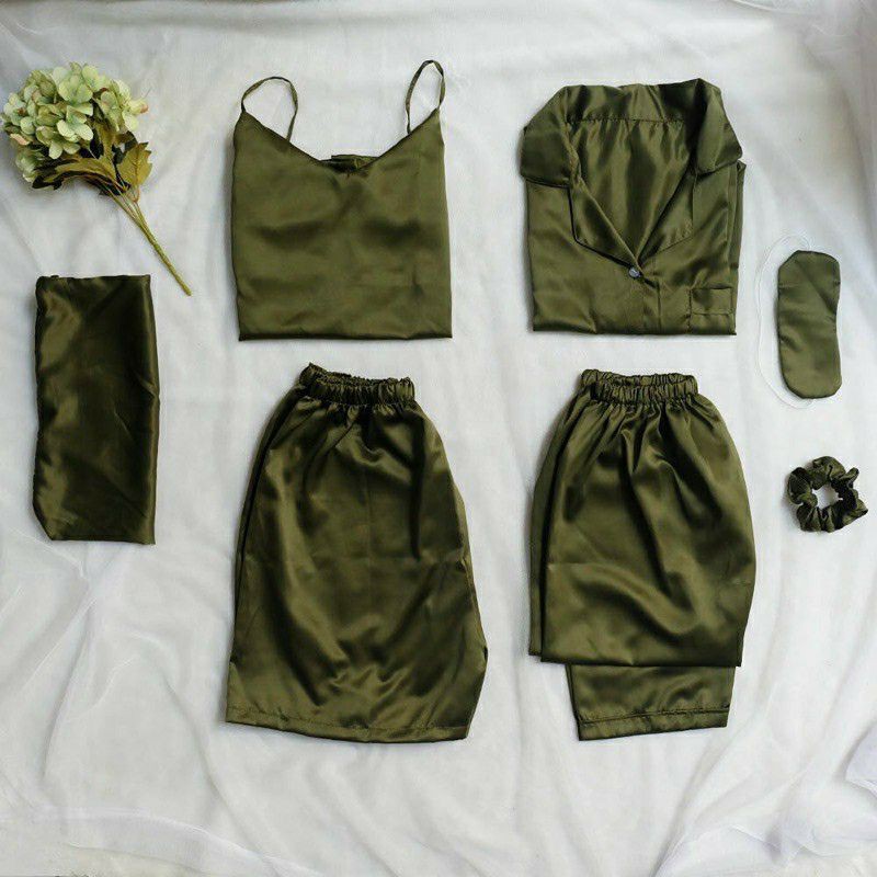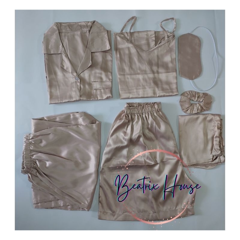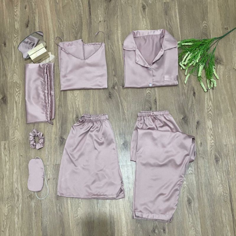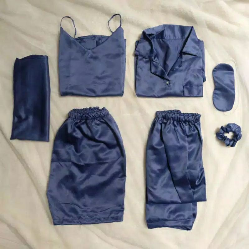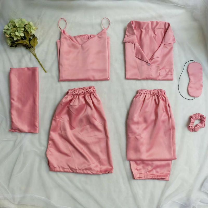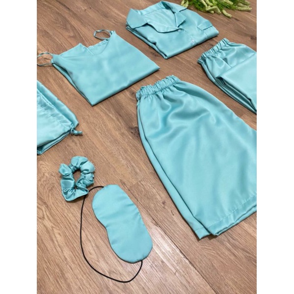 PIYAMA SET 7 IN 1 satin Pajamas Party Bridal Shower Bridesmaid Baju Tidur Seserahan - Birthday Gift- Piyama Satin