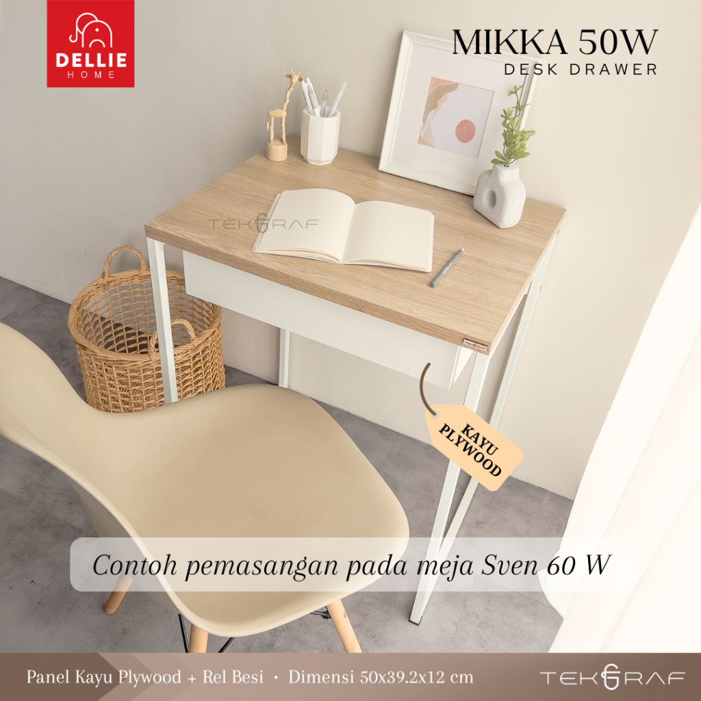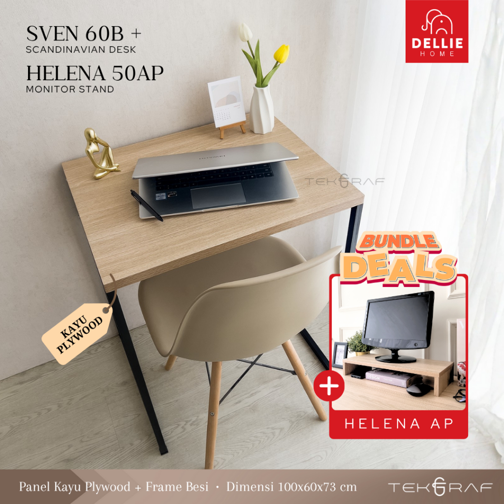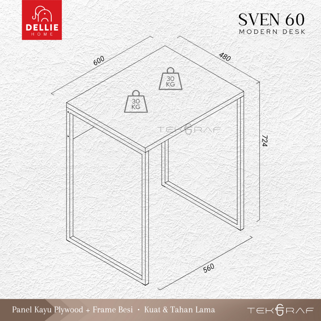 [DELLIE HOME] Tekgraf SVEN 60 B/W Meja Belajar Kerja Sekolah Komputer Kantor Laptop Tulis Kayu Kaki Besi