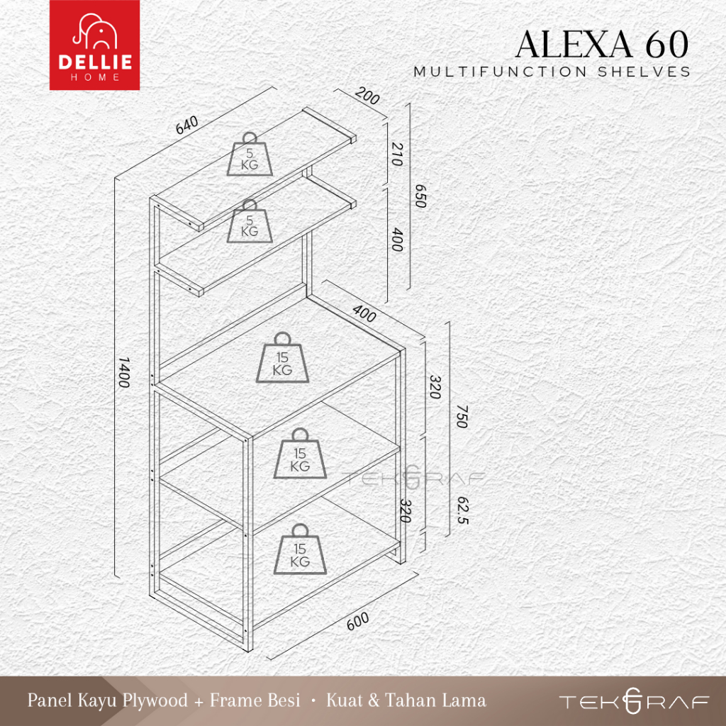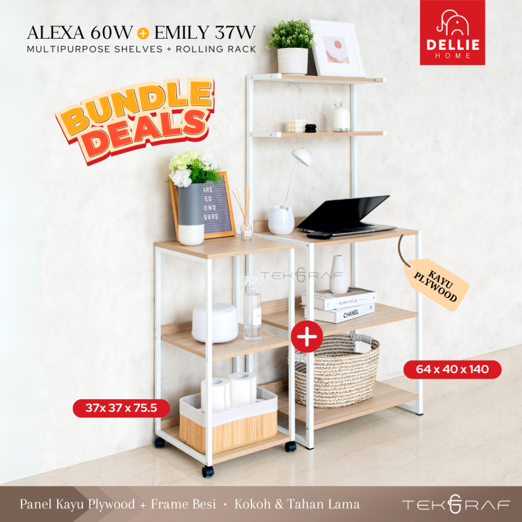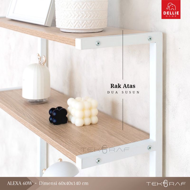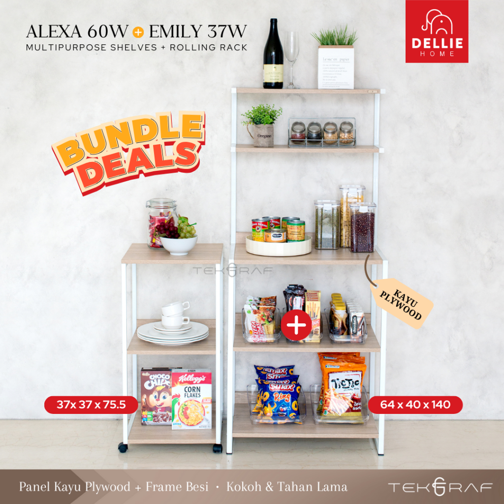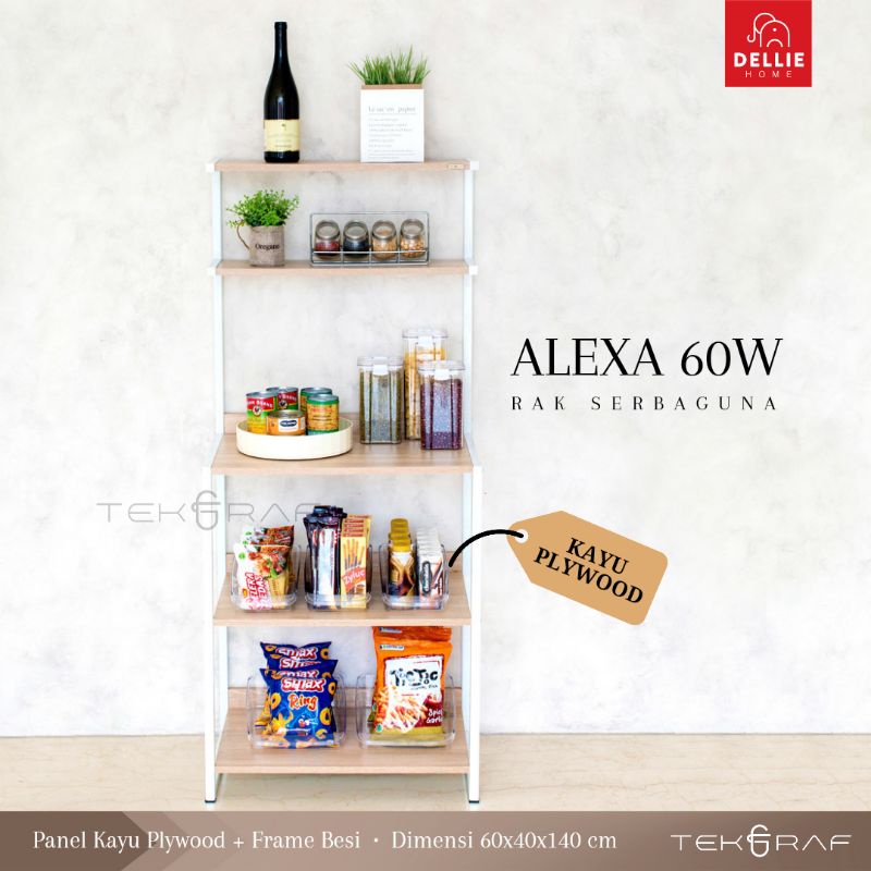 [DELLIE HOME] Tekgraf Alexa 60 W Rak Susun Serbaguna Dapur Lemari Sayur Kayu Kaki Besi