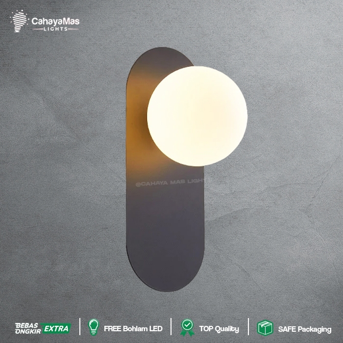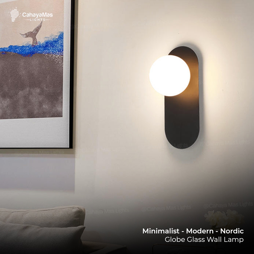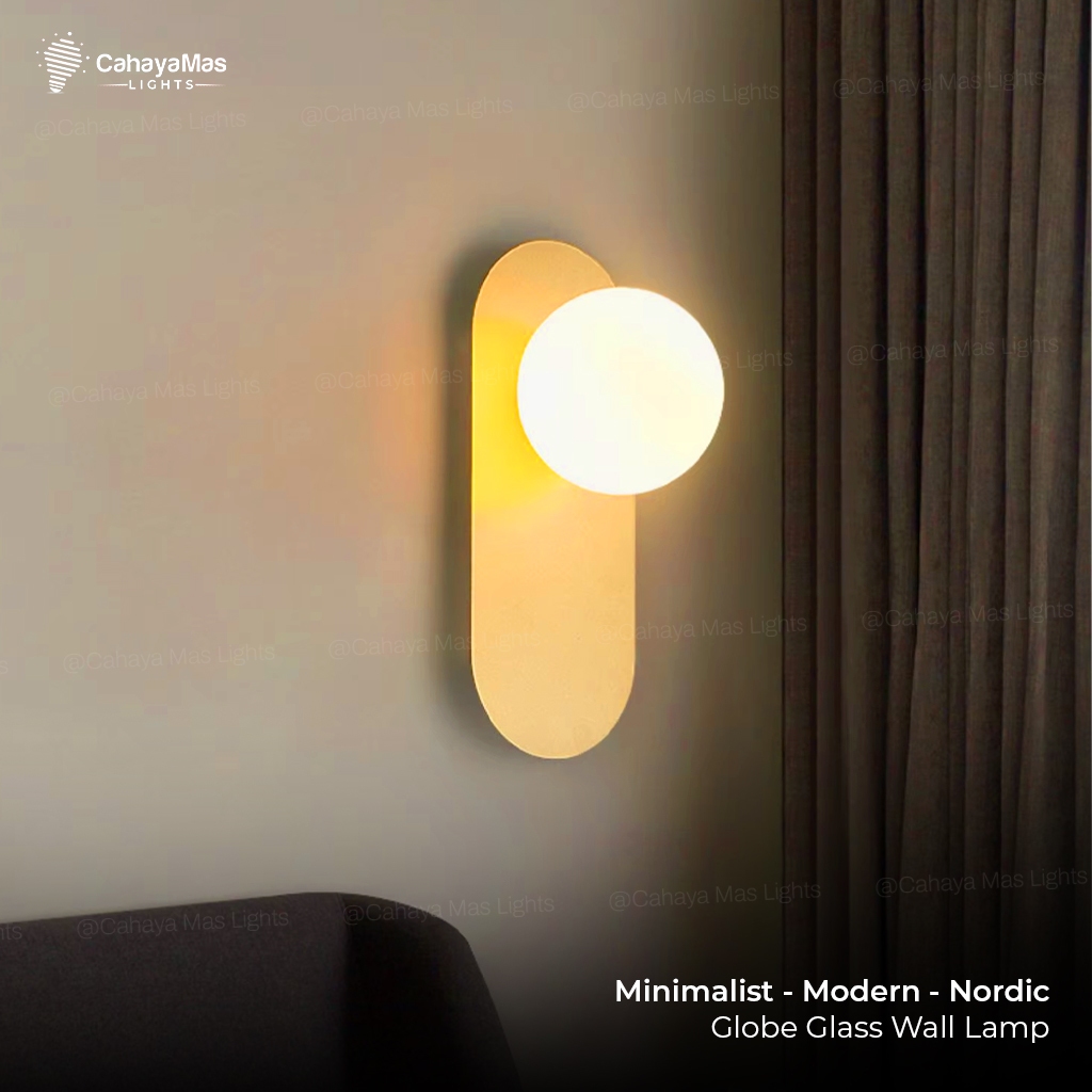 Lampu Hias Dinding Indoor Bulat/Bola Kaca | Minimalist Modern Nordic Gold Black FULLSET (CahayaMasLights)