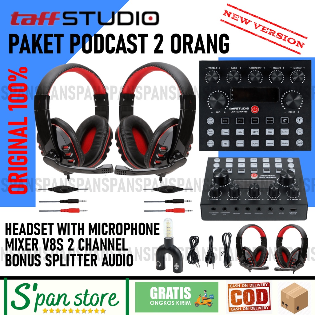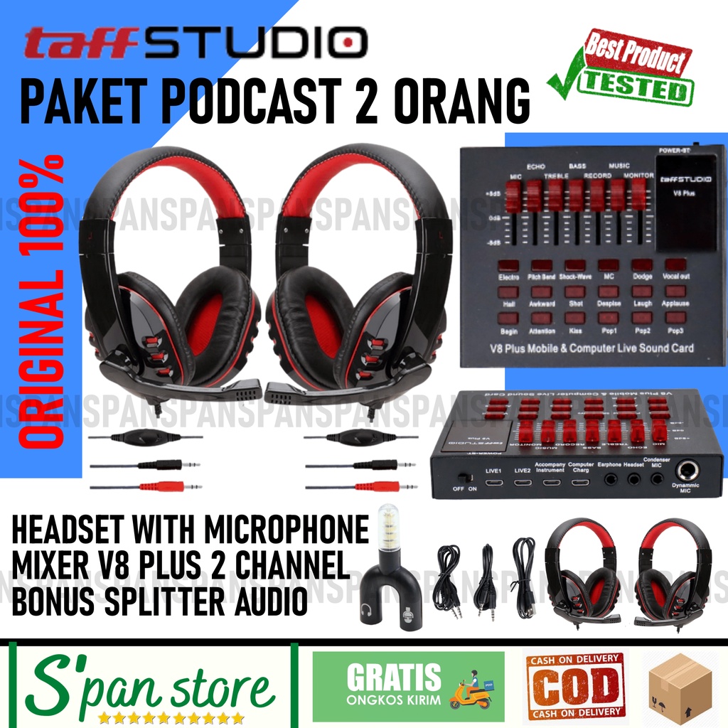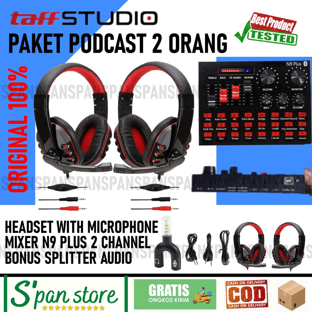 PAKET PODCAST 2 ORANG Microphone Headset Mixer V8s V8 Plus N9 Lengkap