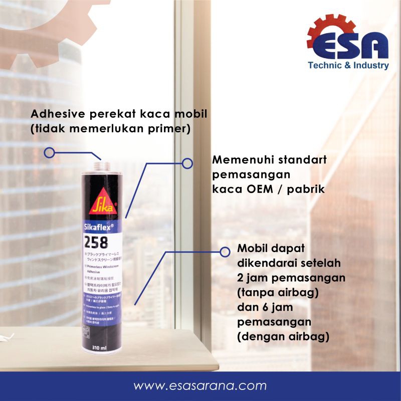PEREKAT KACA MOBIL SIKAFLEX 258 BLACK 310 ML ORIGINAL