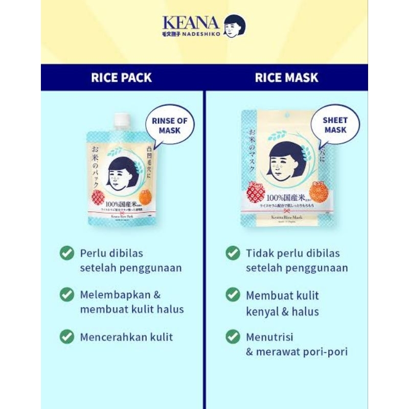 KEANA Nadeshiko Rice Skincare//RICE SHEET MASK KEANA *MADE IN JAPAN*