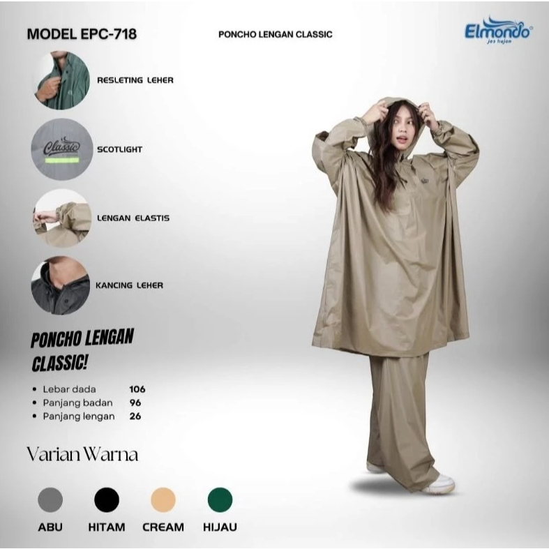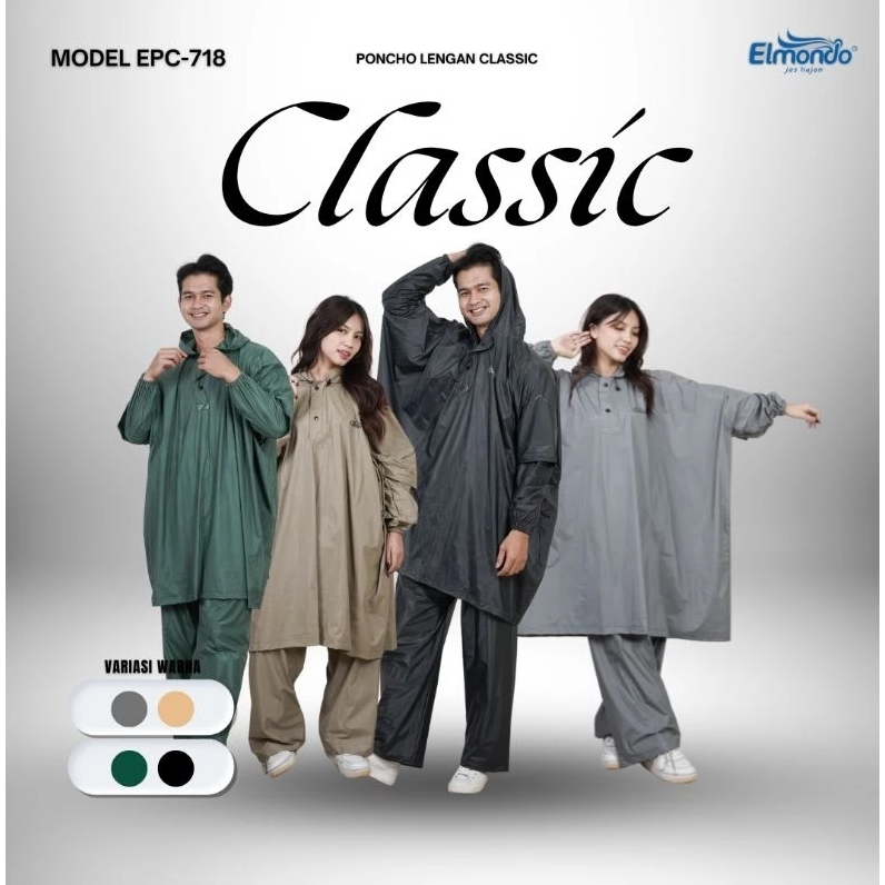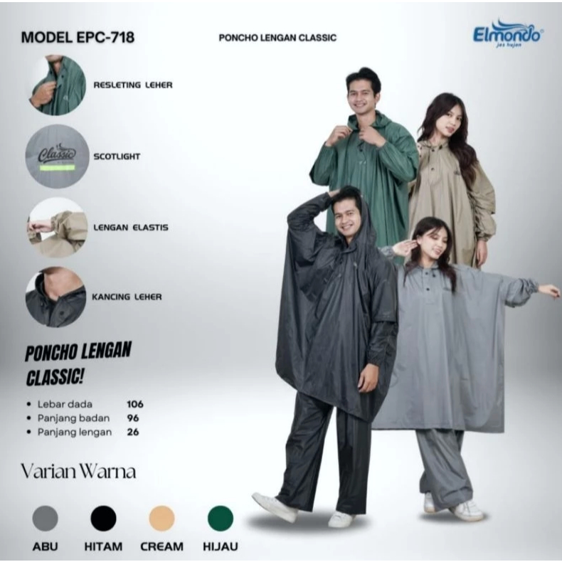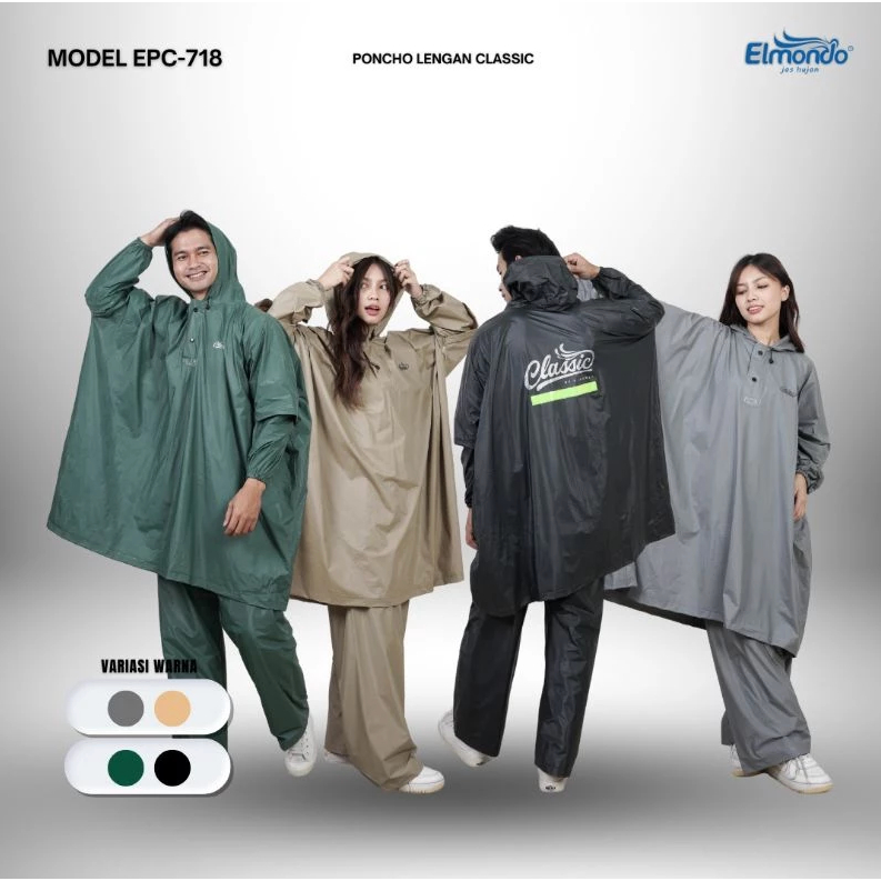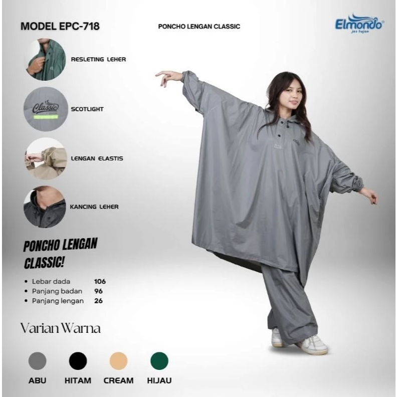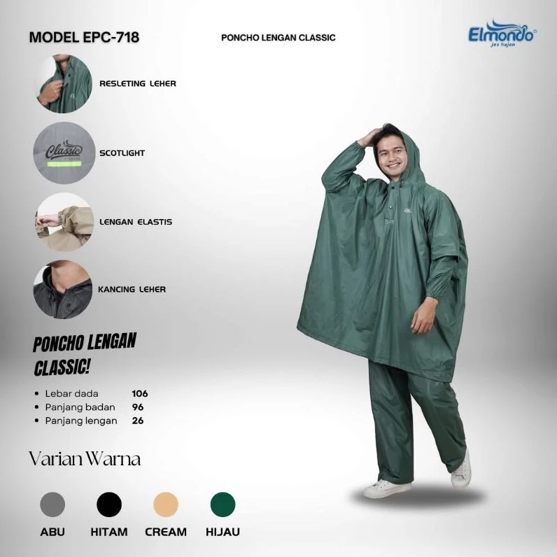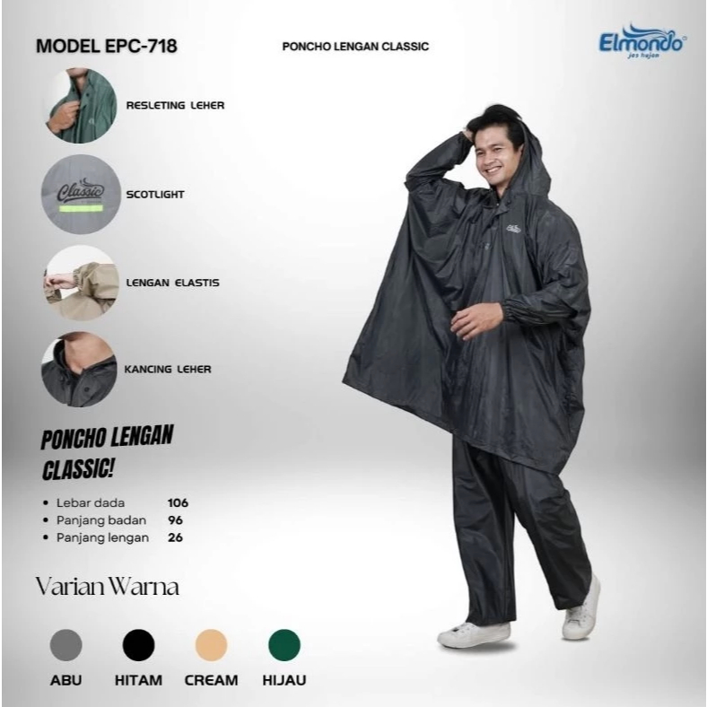 Jas Hujan Ponco Lengan Celana Elmondo CLASSIC 718 / Mantel Setelan Poncho Dewasa Pria dan Wanita