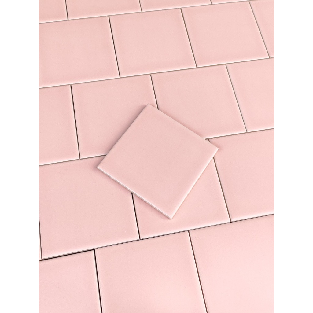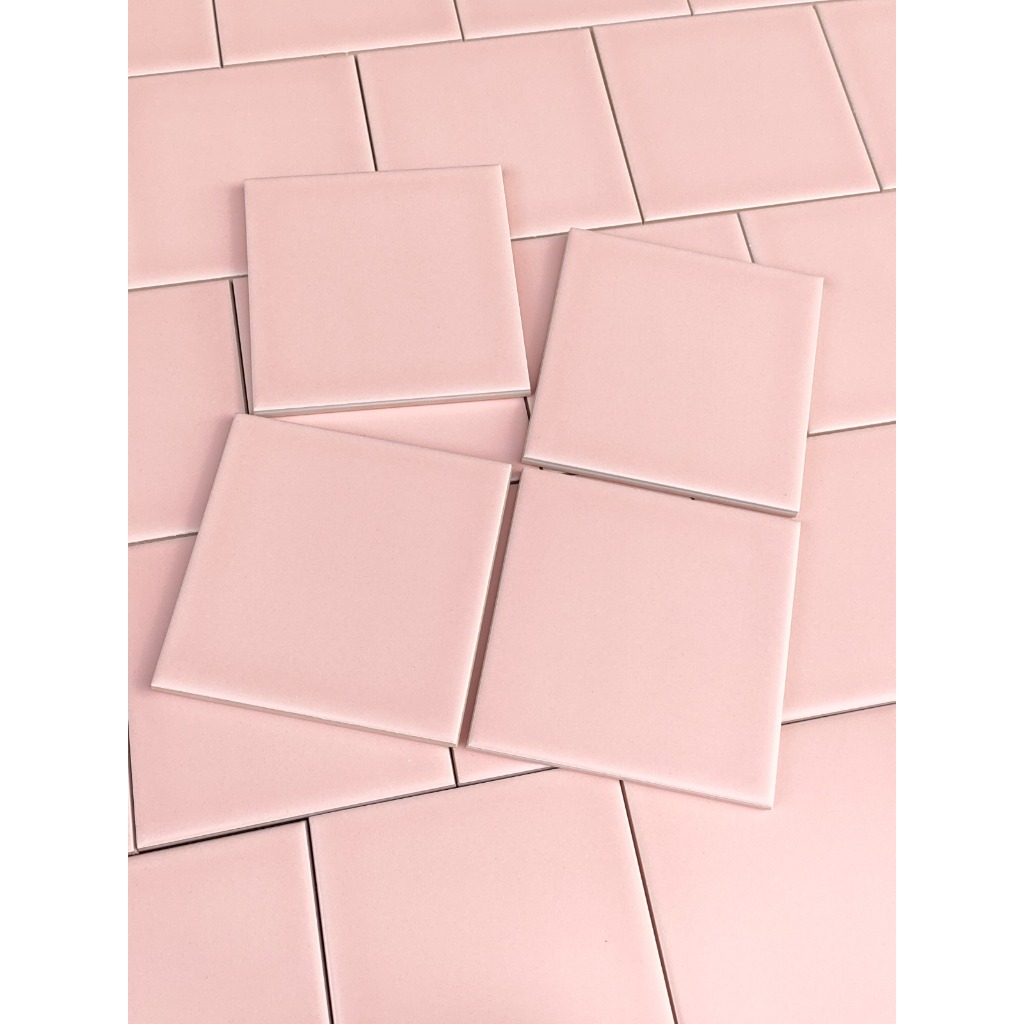 Keramik Lantai dan Dinding Dinding Backsplash, Kamar Mandi, Wall Decoration, Laundry Room Venus Tiles Takko Square Pink Glossy No Bevel 10x10cm