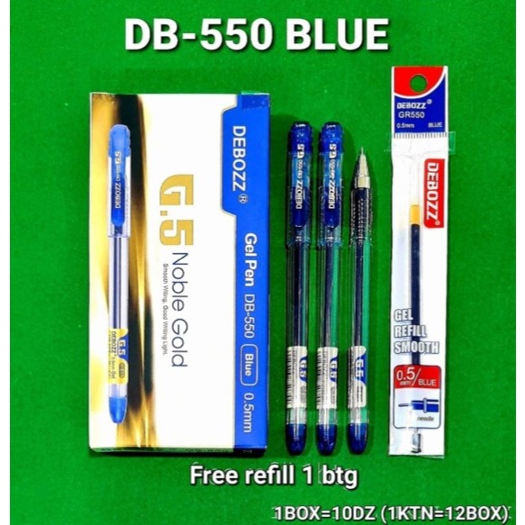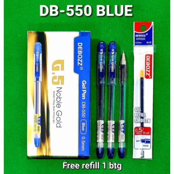 Debozz Gel Pen 0.7mm Warna Biru / Ballpoint / Pulpen Gel DB-550 (1 Kotak isi 12 Pcs)