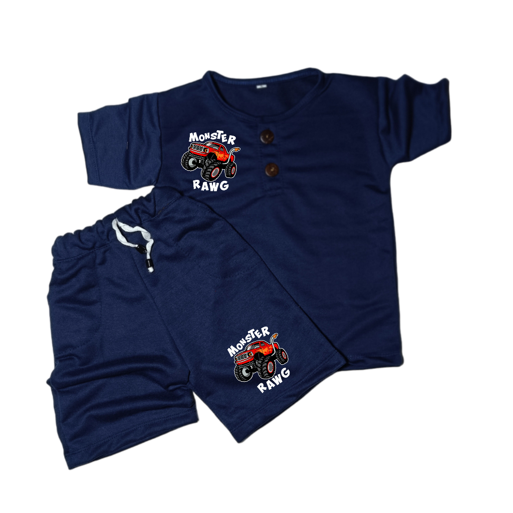 setelan kiano anak laki laki gambar karakter kendaraan monster rawg untuk usia 1-5 tahun