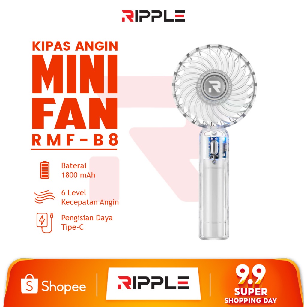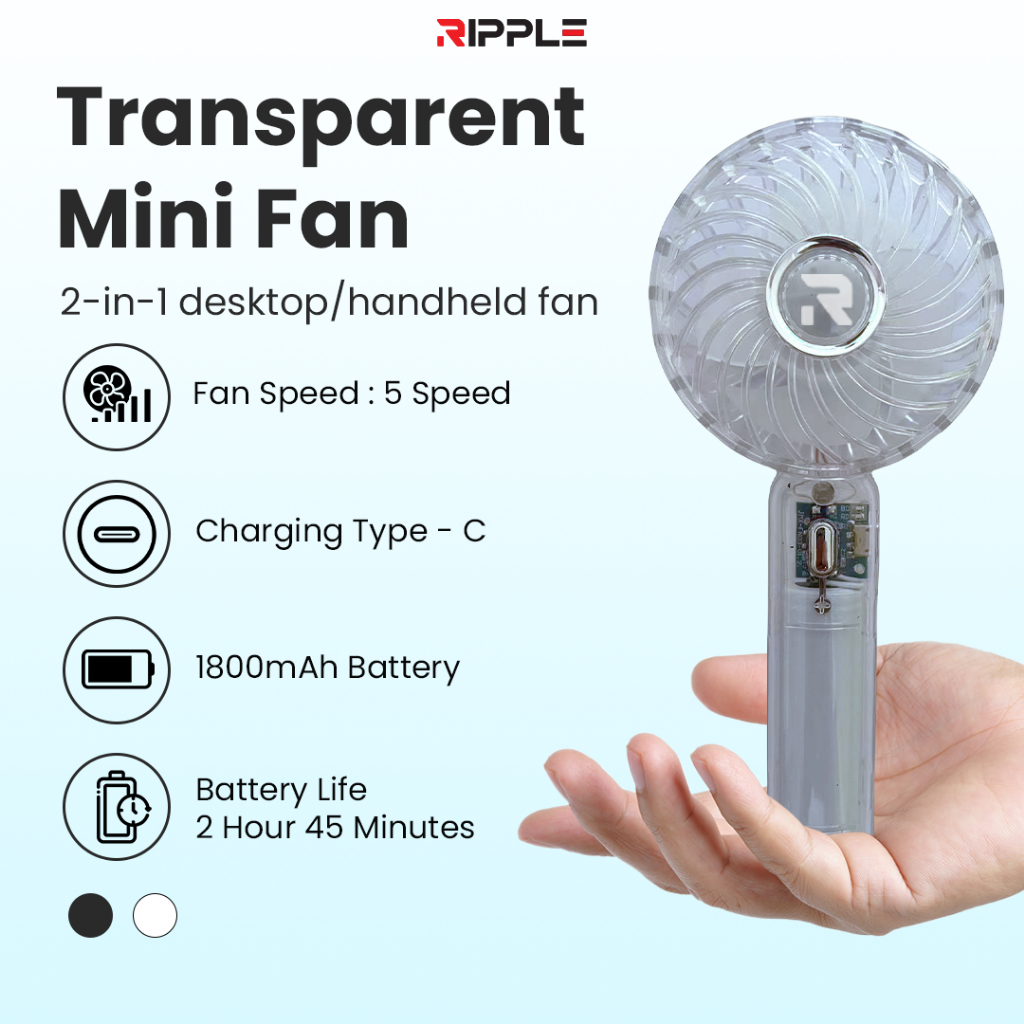 Ripple Transparan Kipas Angin Portabel 18000mAh Mini Fan 6-Speed LED Display Handheld Fan High Speed