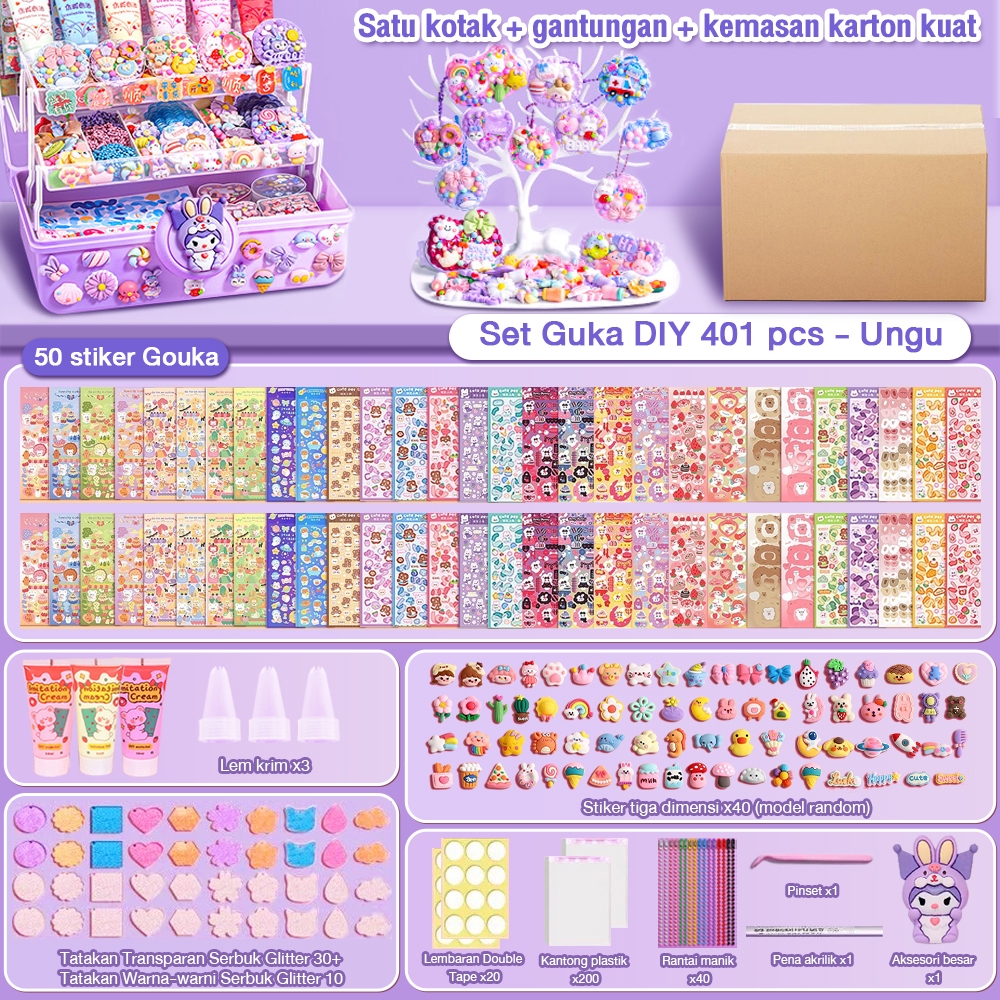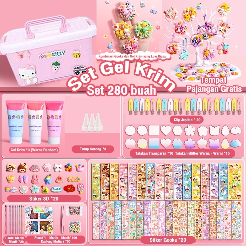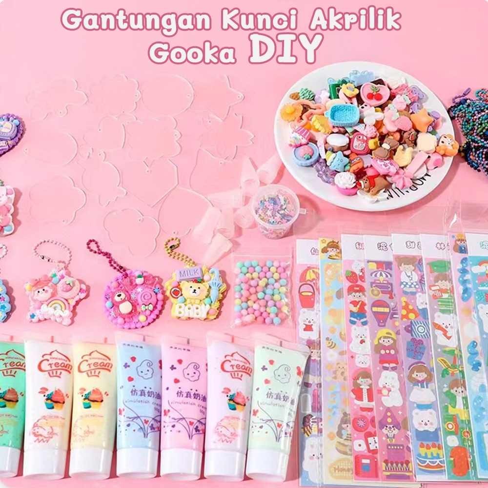 Tatajoy 2000Pcs Guka Set DIY Keychain Set Deluxe DIY Deco Lem Krim guka stiker Set Gooka Set Cream Gum Kartun DIY Guka Sticker Mainan Anak Perempuan Hadiah Ulang Tahun