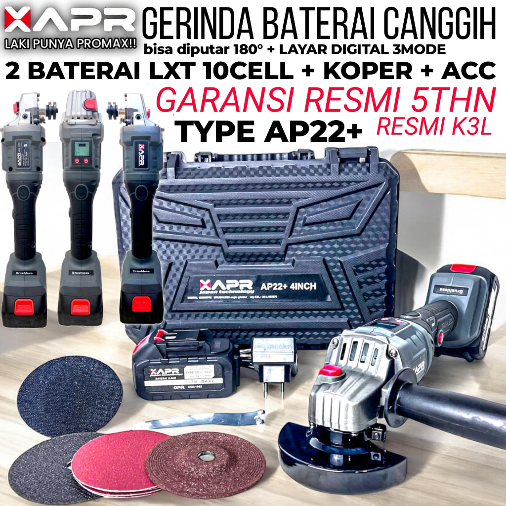 GERINDA BATERAI XAPR AP22 PLUS 4inch DIGITAL LAYAR BRUSHLESS 2 Baterai LXT 10CELL APR