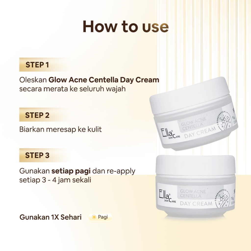 Ella Skincare Glow Acne Centella Day Cream with Triple Filter & Centella Asiatica - Mencerahkan & Melindungi Kulit sinar UV