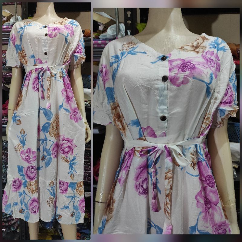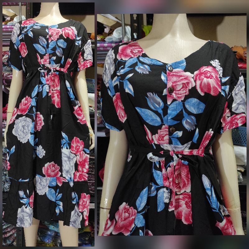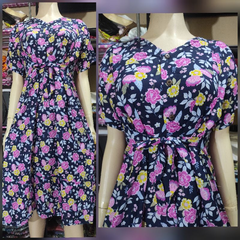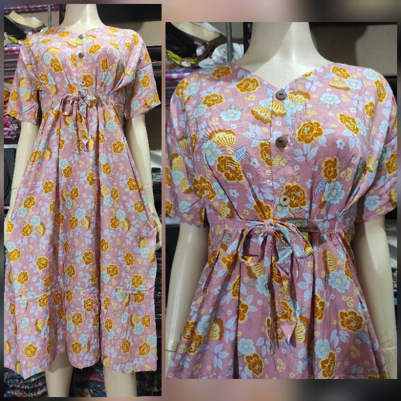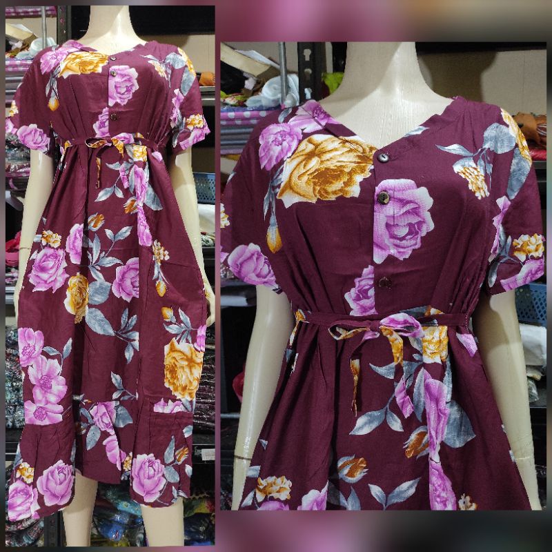 Daster Bali Busui Kancing Panjang Ruffle Ranty Maria Motif Bunga