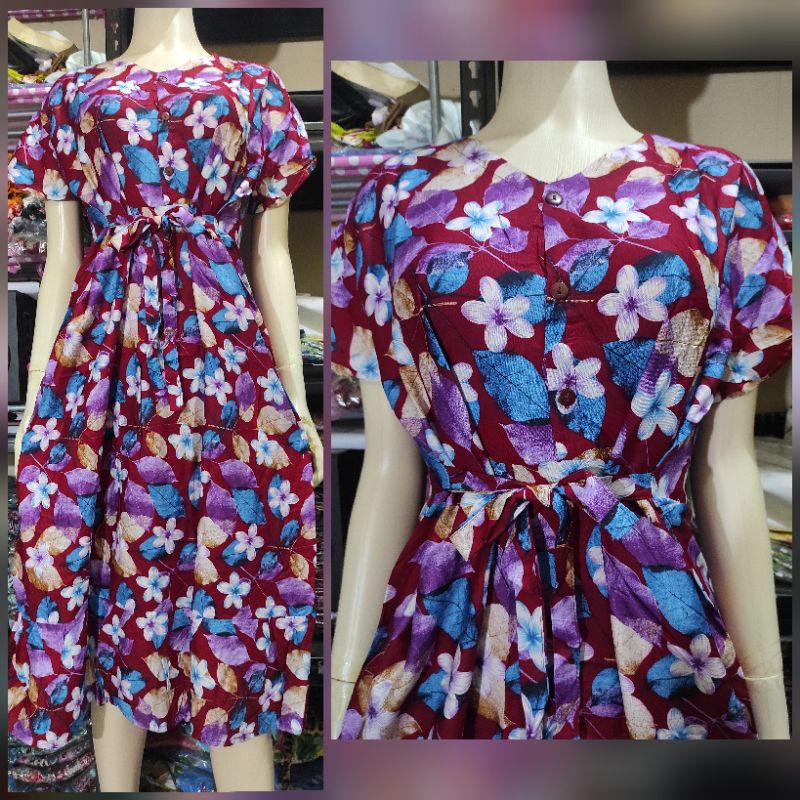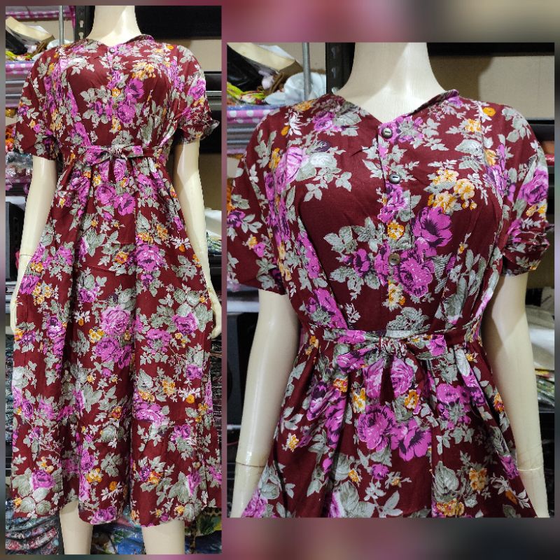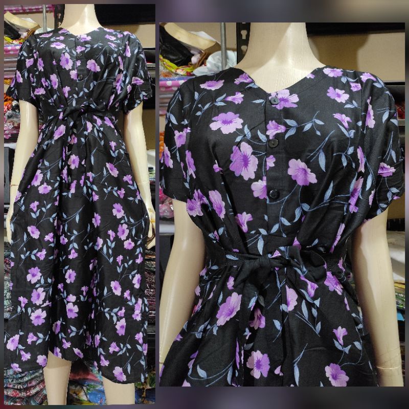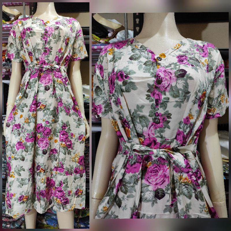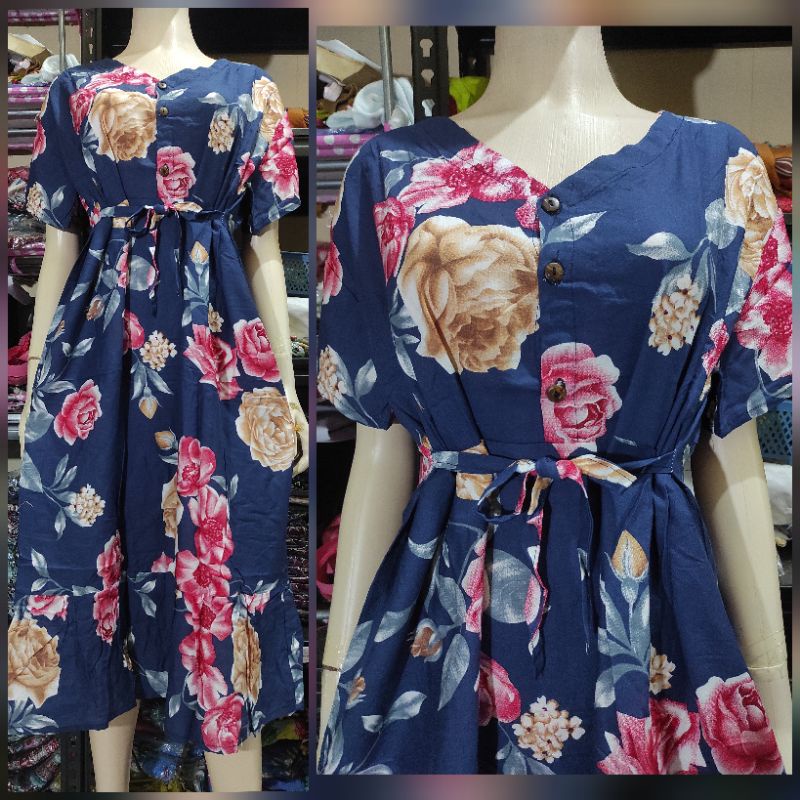 Daster Bali Busui Kancing Panjang Ruffle Ranty Maria Motif Bunga