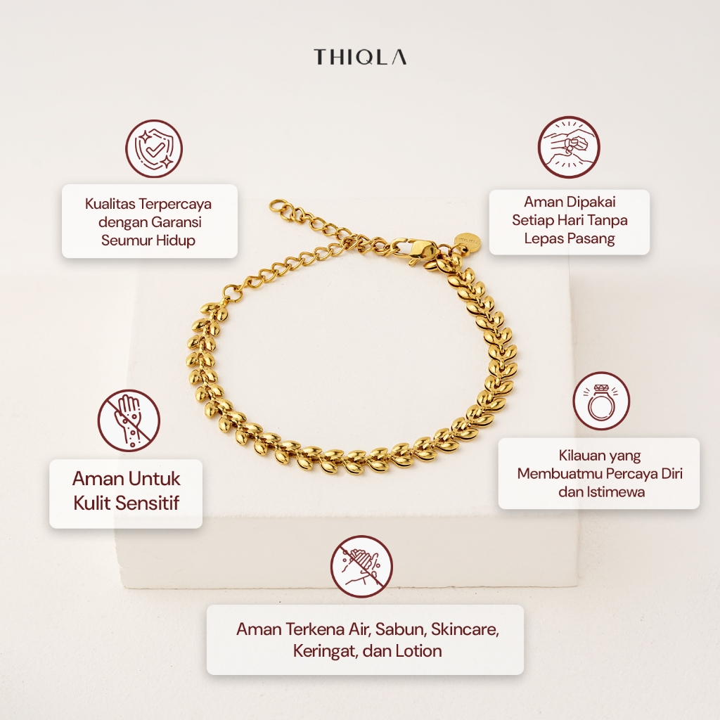 THIQLA - Gelang Rantai Padi NAILA - Gelang Tangan Wanita - Gelang Bunga - Gelang Elegan Anti Karat