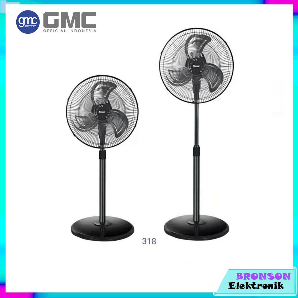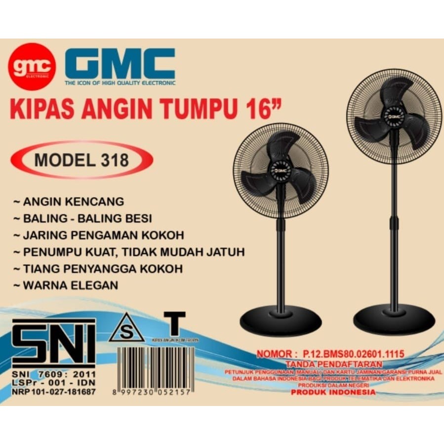 Kipas Angin Berdiri 16 Inch GMC 318 3 Baling-Baling Besi 60 Watt