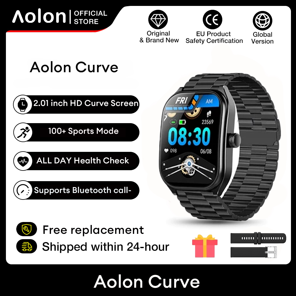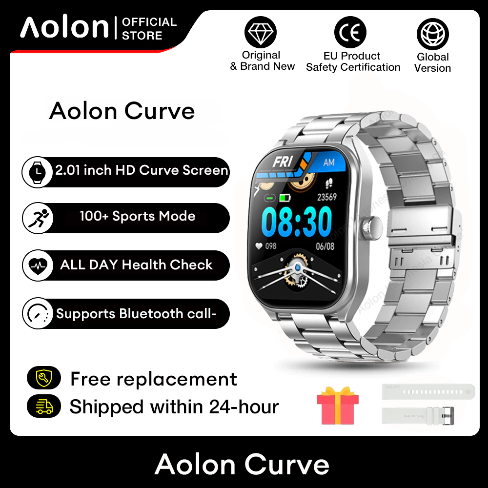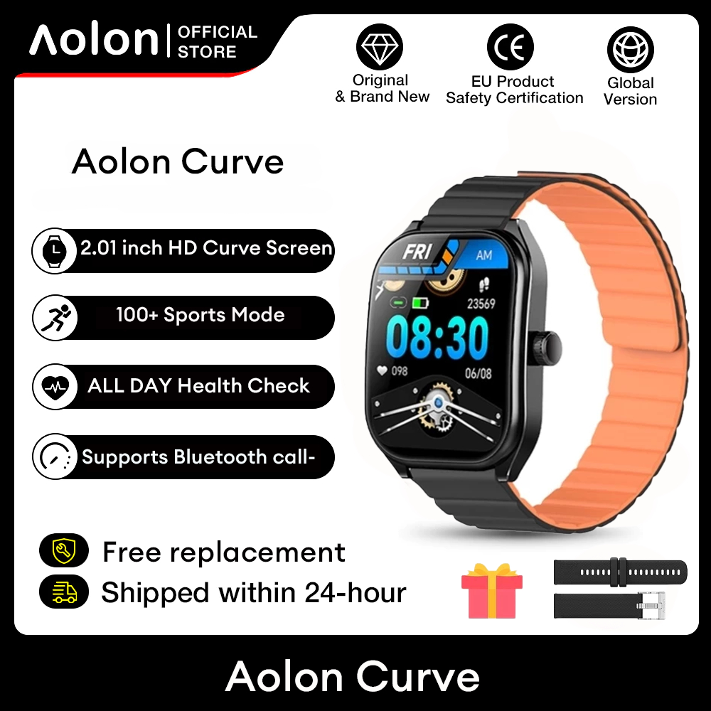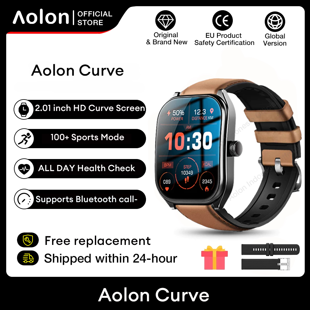 Aolon Curve Jam Tangan Smartwatch IP68 Original 2.01" HD Screen Dukung panggilan Bluetooth Running Pace SmartWatch Wanita Pria